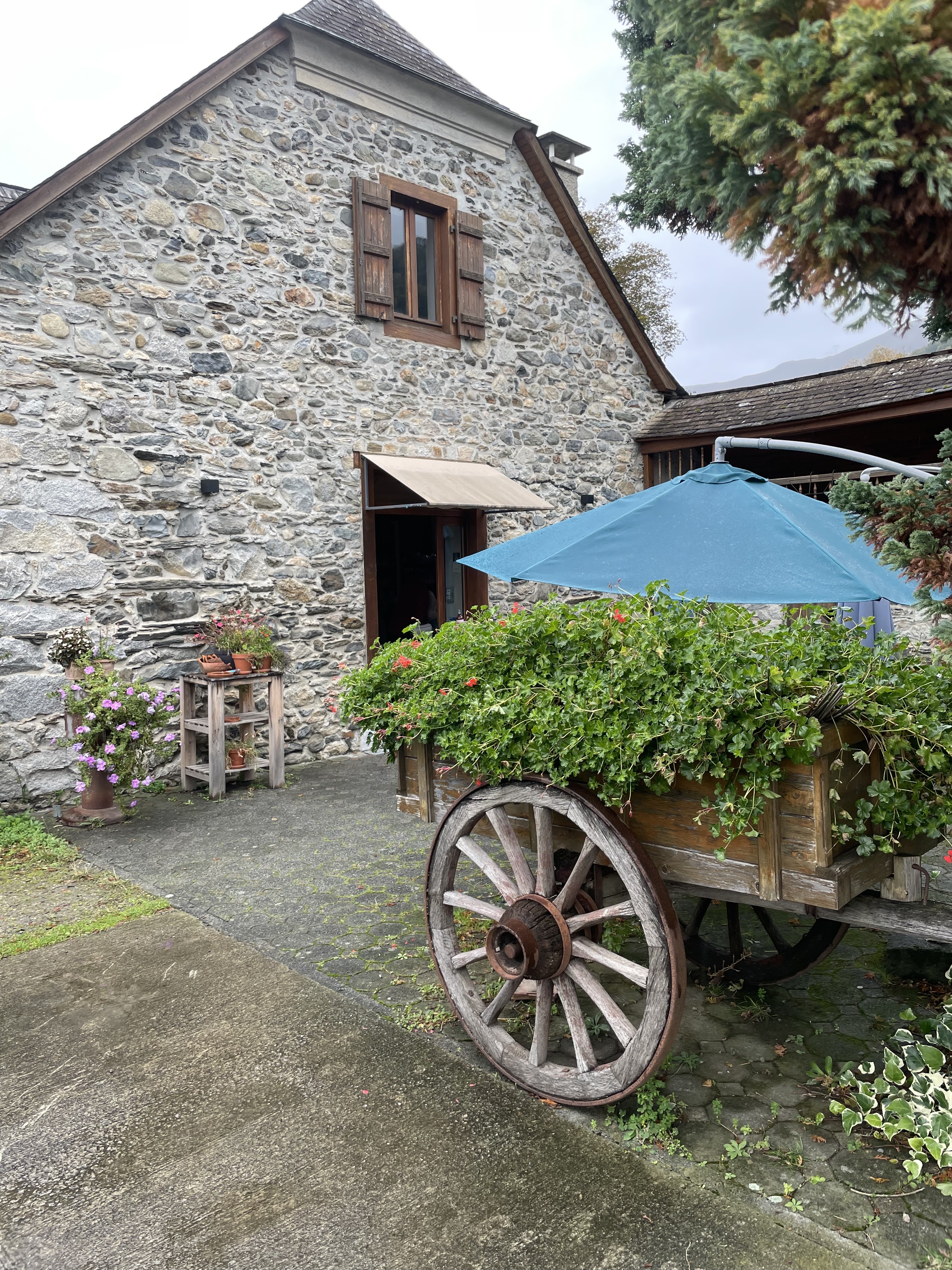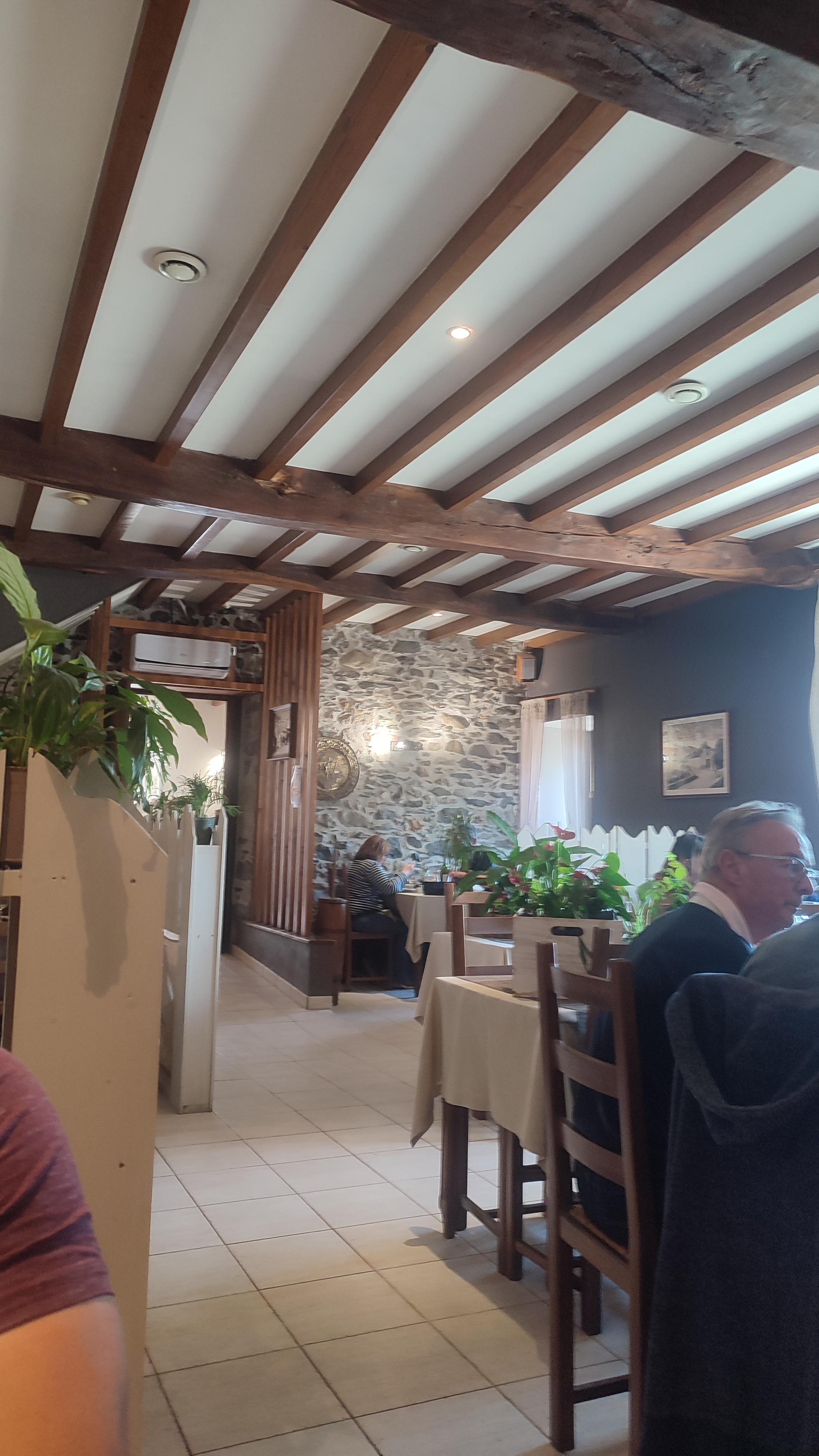 Repas en famille. Service très sympathique et efficace, à l'écoute. Lieu authentique et chaleureuse. Une cuisine traditionnelle, généreuse et savoureuse. L'espace extérieur doit être très agréable par temps doux avec vue sur les montagnes. Cadre paisible, propre et joliment rénové avec beaucoup d'objets anciens, des pierres, du bois. Une belle découverte pour moi. Mention spéciale au gendre de la famille qui a su répondre à nos demandes 😊.
