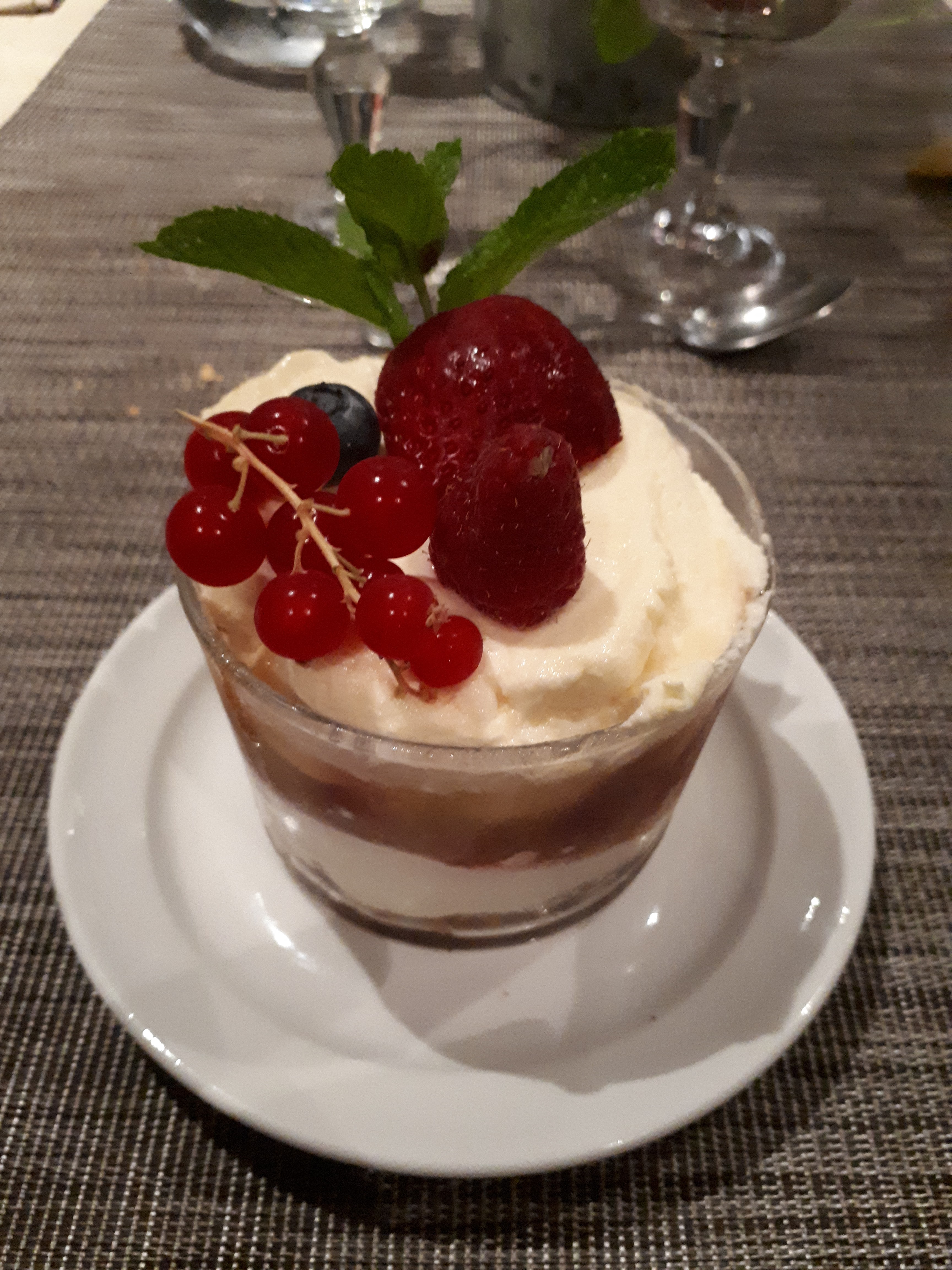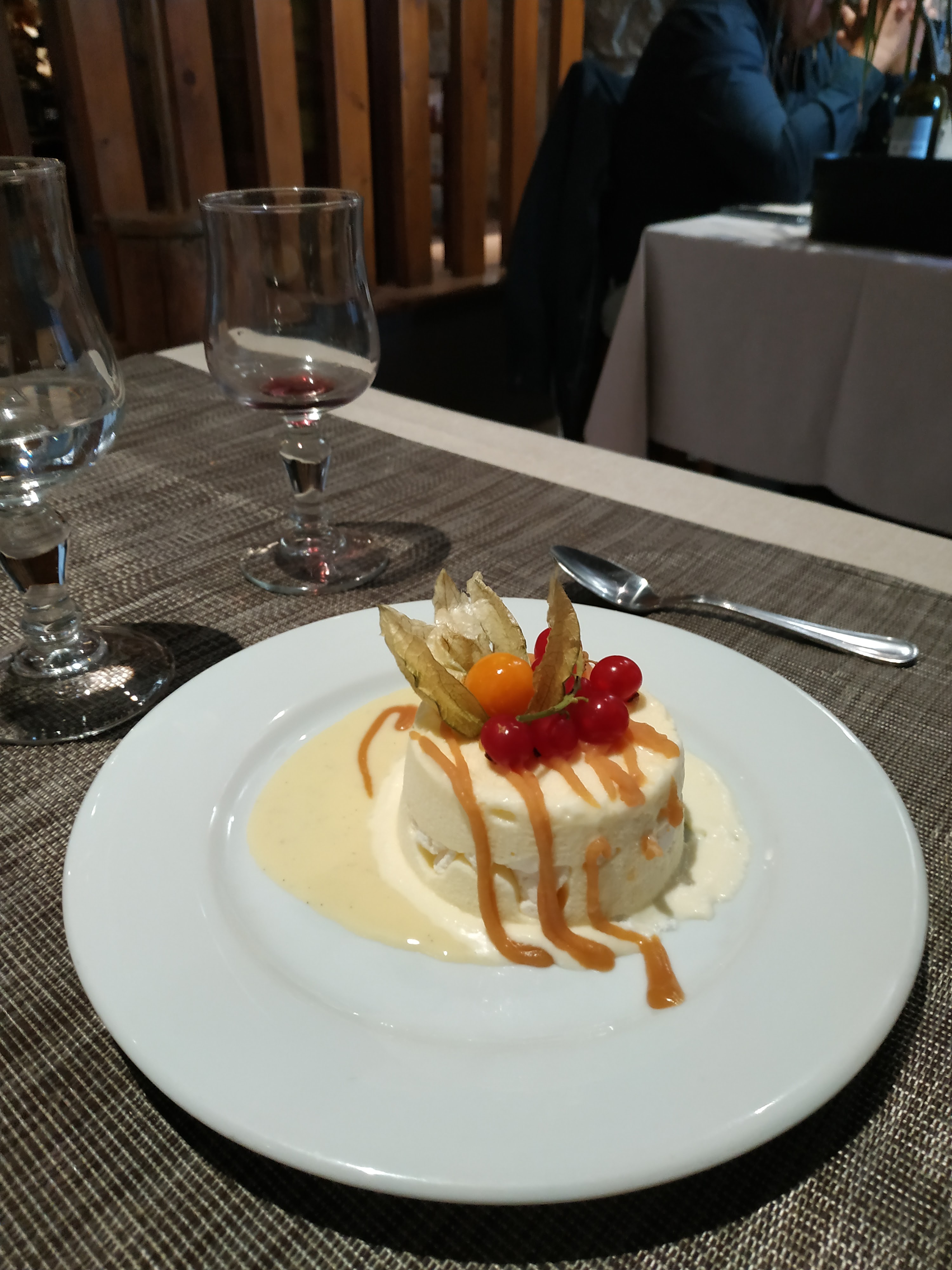 Fait maison. Très bien présenté, un régal. N'importe quoi que l'on choisi. Quand la terrasse est ouverte, vous avez une vue sur les montagnes, la vue est dégagée. 👍👍. Exceptionnellement nous avons fait ce prix. Anniversaire de mariage. (50 ans). Nous y allons une fois chaque fois que nous venons à la montagne. Donc nous connaissons bien cette auberge. 😋😋