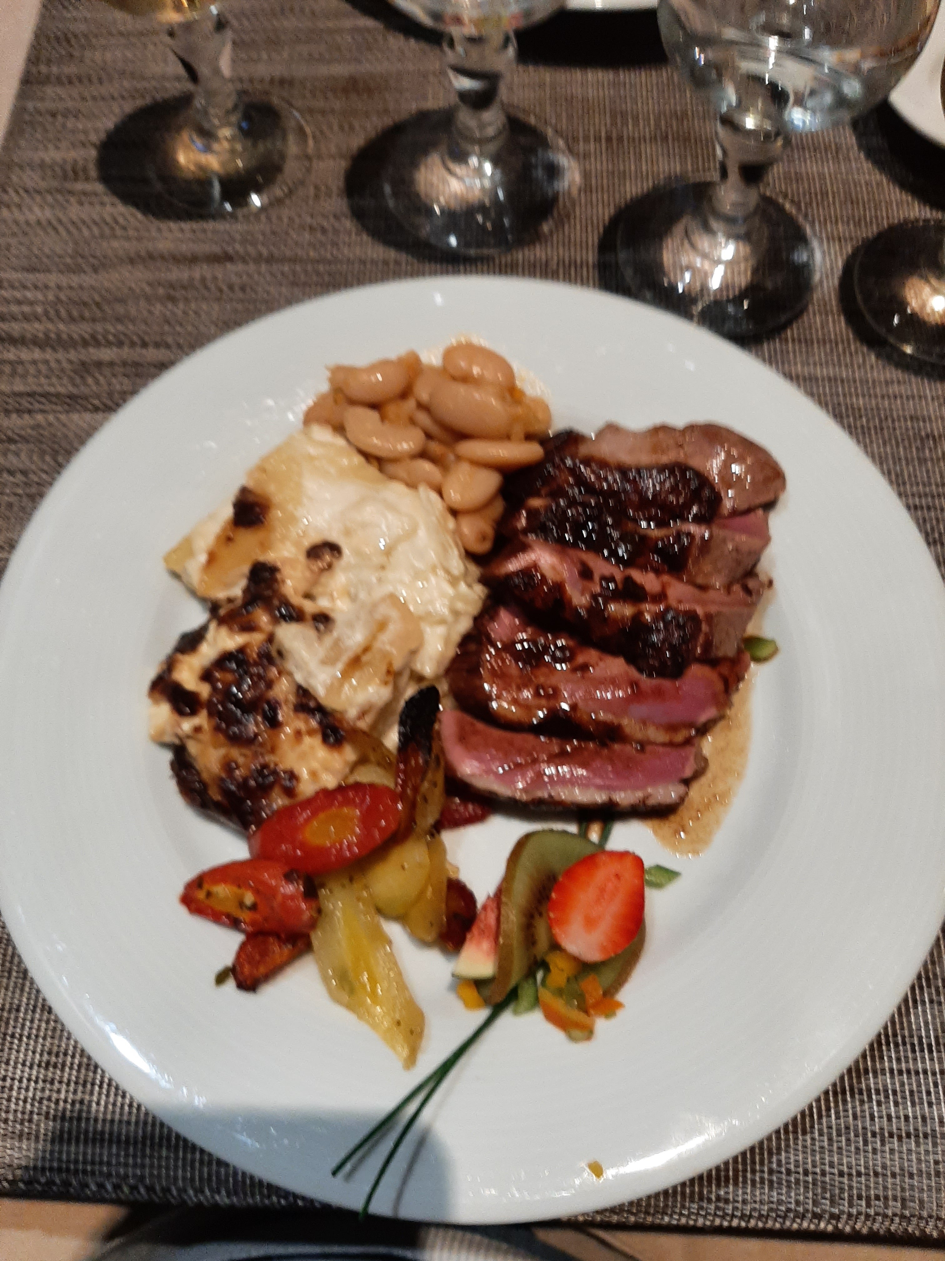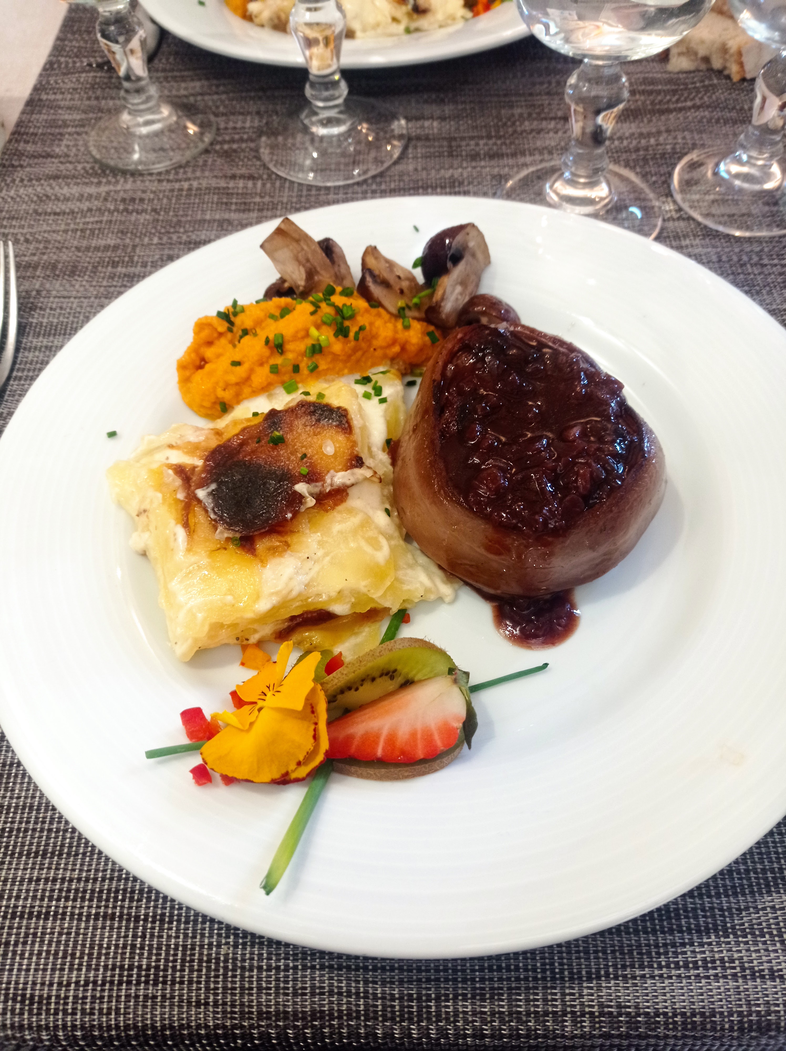 Foie gras succulent avec sa tarte tatie,tournedos exceptionnel et dessert excellent n'hésitez pas allez-y !@@