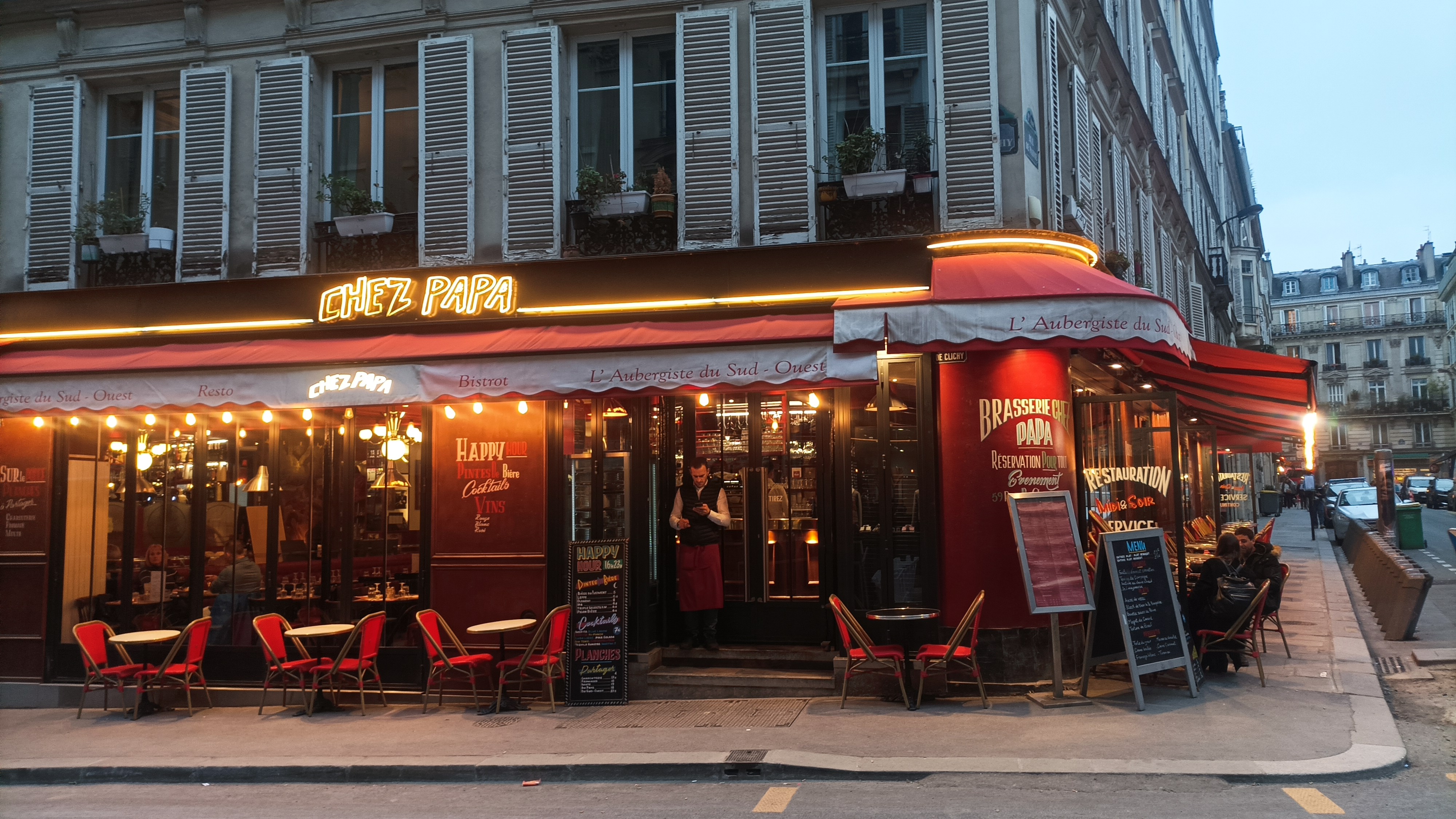 On se sent comme à la maison dans ce restaurant du 9e. La carte est celle de Chez Papa et le service est à la hauteur de l'enseigne. On ne perd rien des saveurs de Chez Papa l'original avec un prix toujours plus que raisonnable. Dans celui ci vous serez peut être accueilli par Hakim qui sait vous mettre à l'aise et vous offrir une soirée mémorable ;) merci