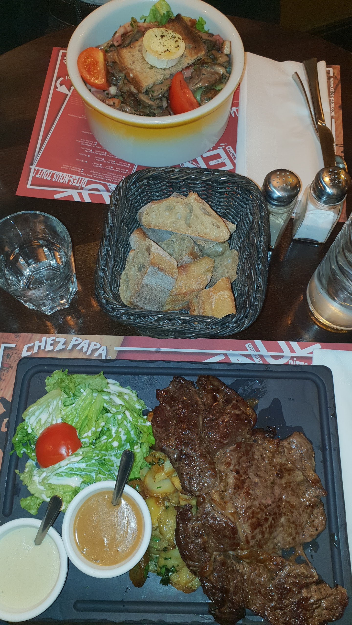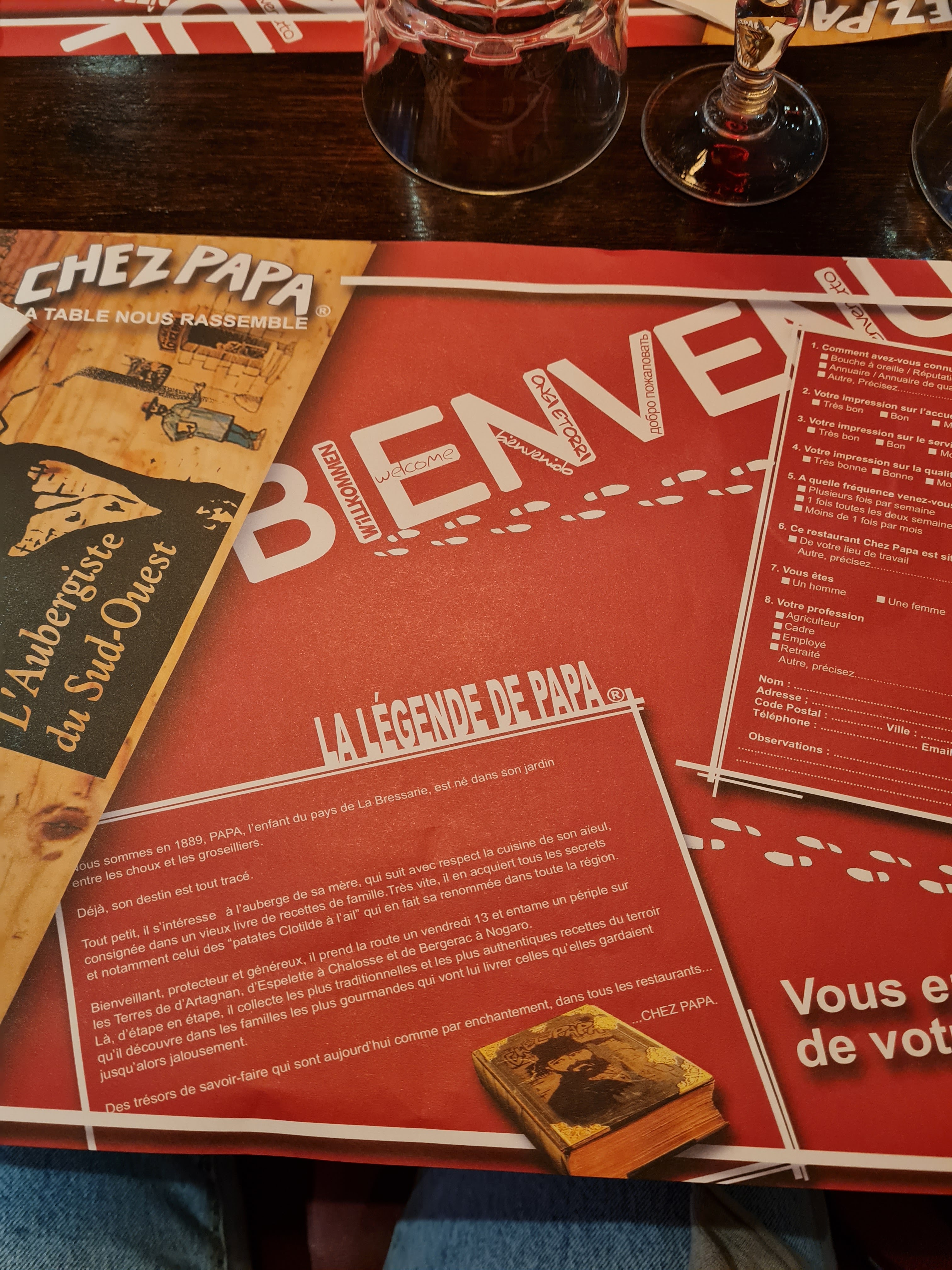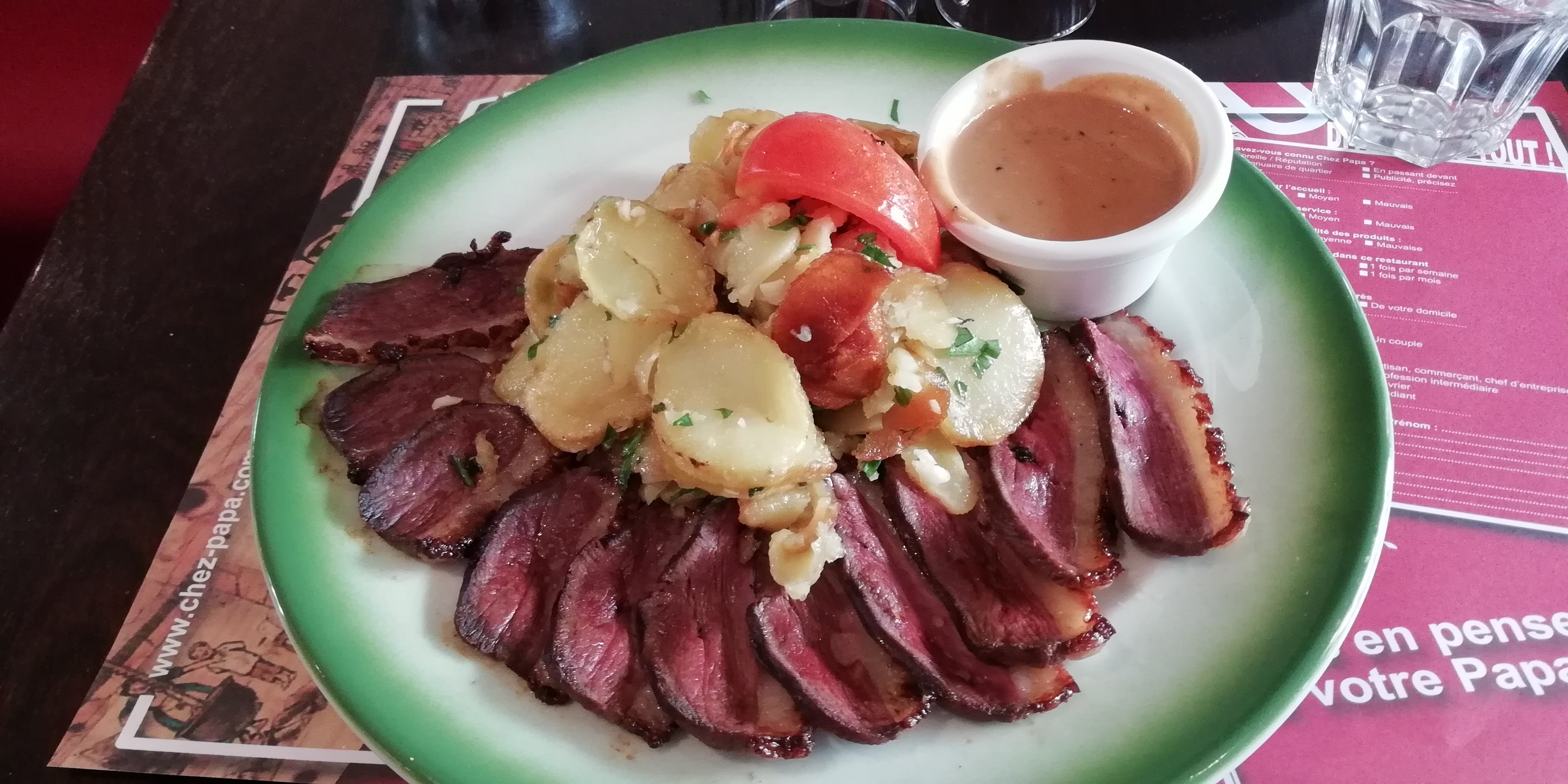Ce n'est pas la première fois que je dine Chez Papa. L'accueil était chaleureux et le service rapide. Nos salades du sud ouest étaient bonnes mais pour apporter une petite critique nous dirions que les pommes de terres n'étaient pas suffisamment chaudes comme à l'habitude.