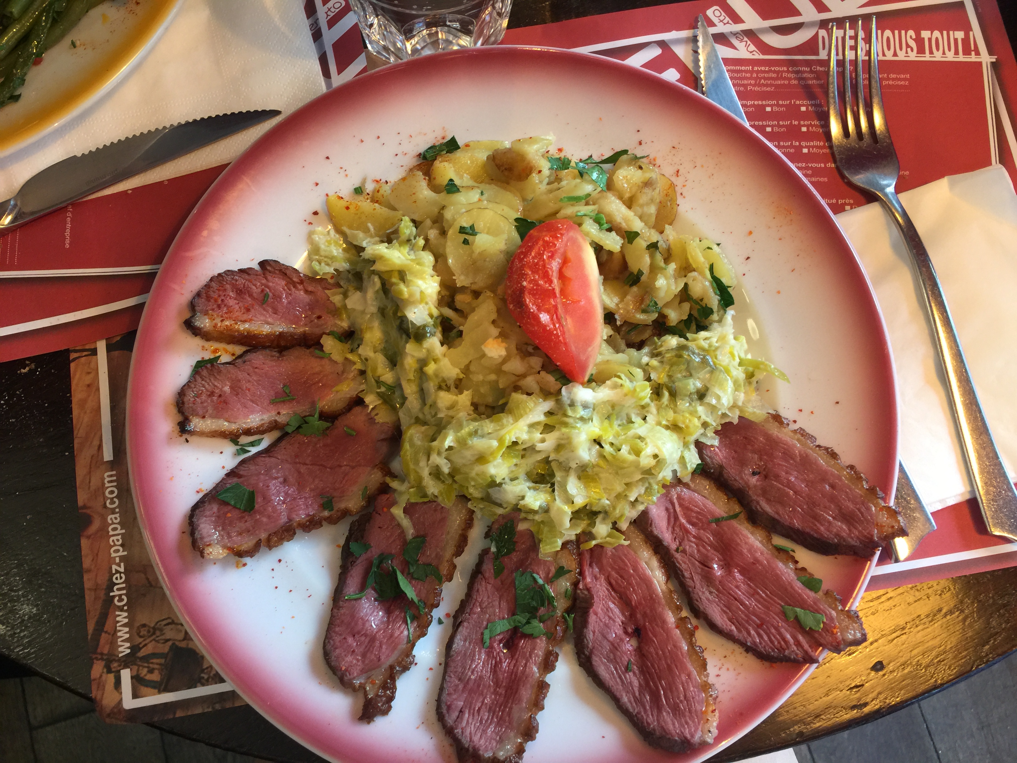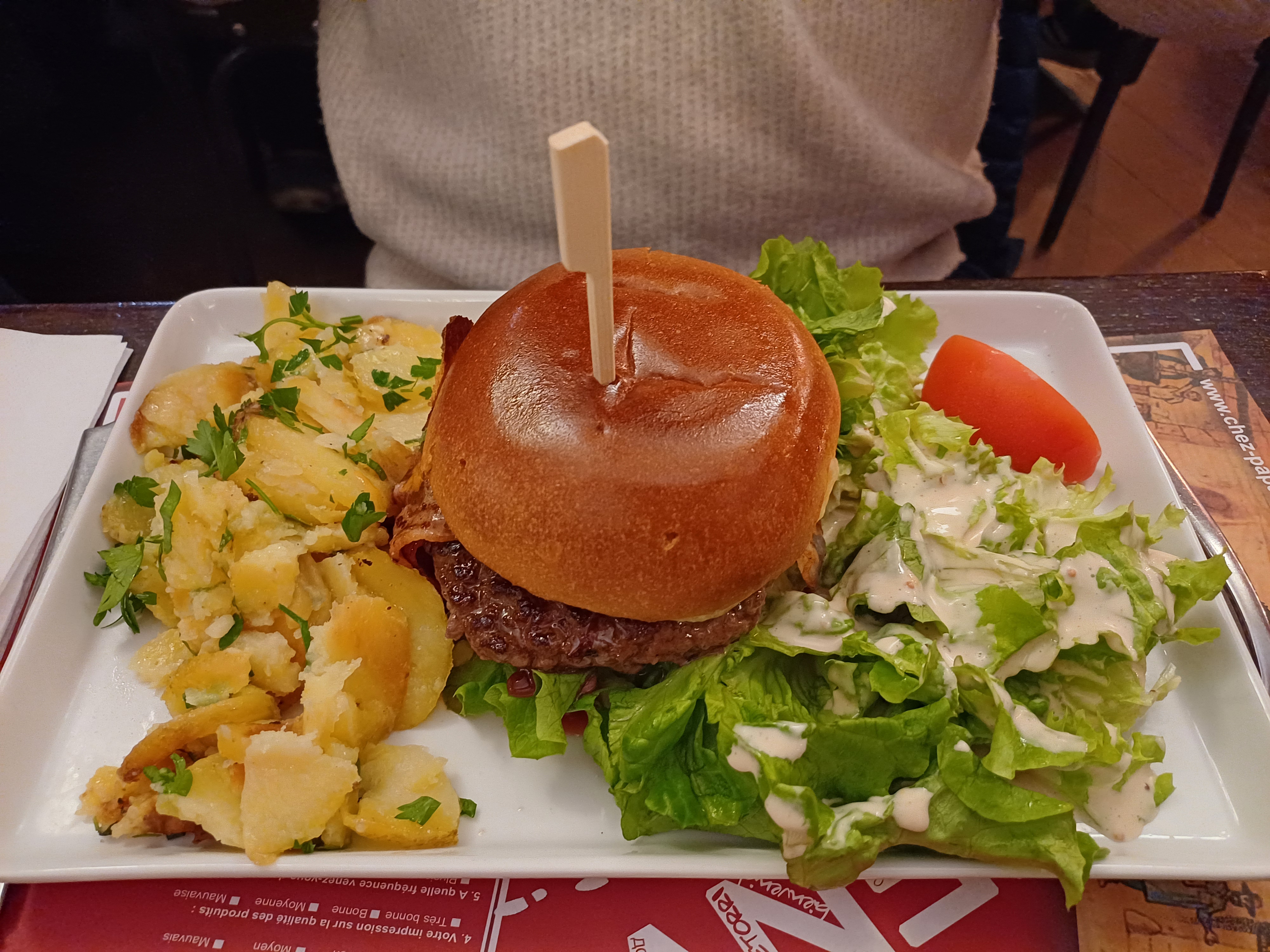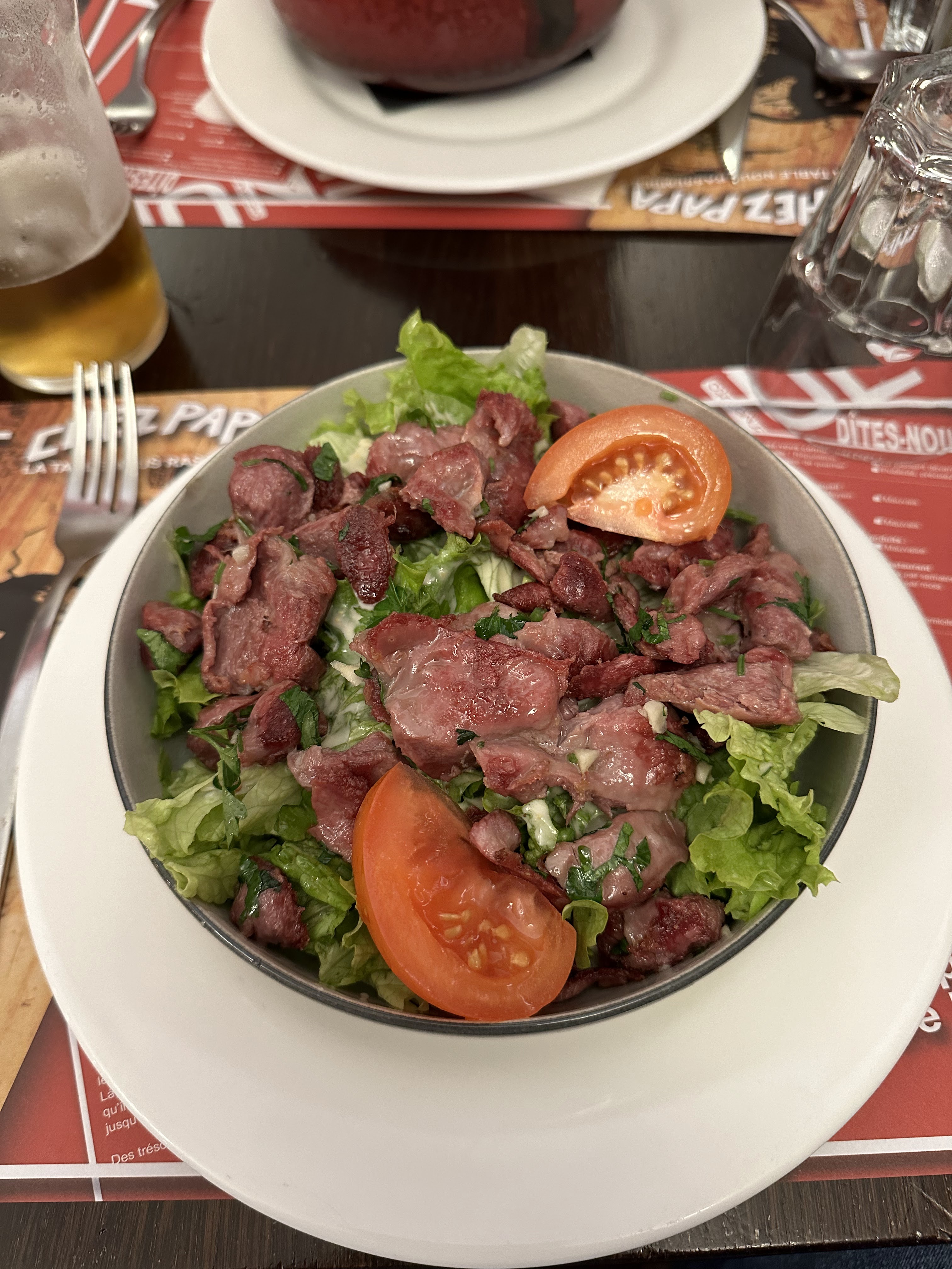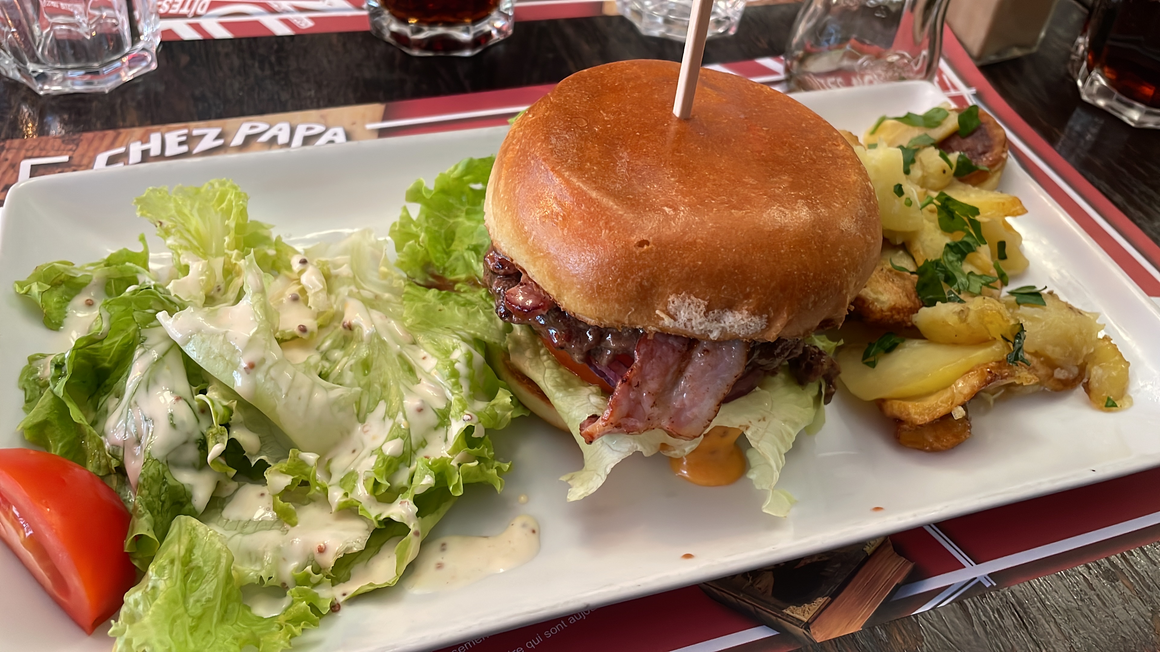 Ce n'est pas la première fois que je dine Chez Papa. L'accueil était chaleureux et le service rapide. Nos salades du sud ouest étaient bonnes mais pour apporter une petite critique nous dirions que les pommes de terres n'étaient pas suffisamment chaudes comme à l'habitude.