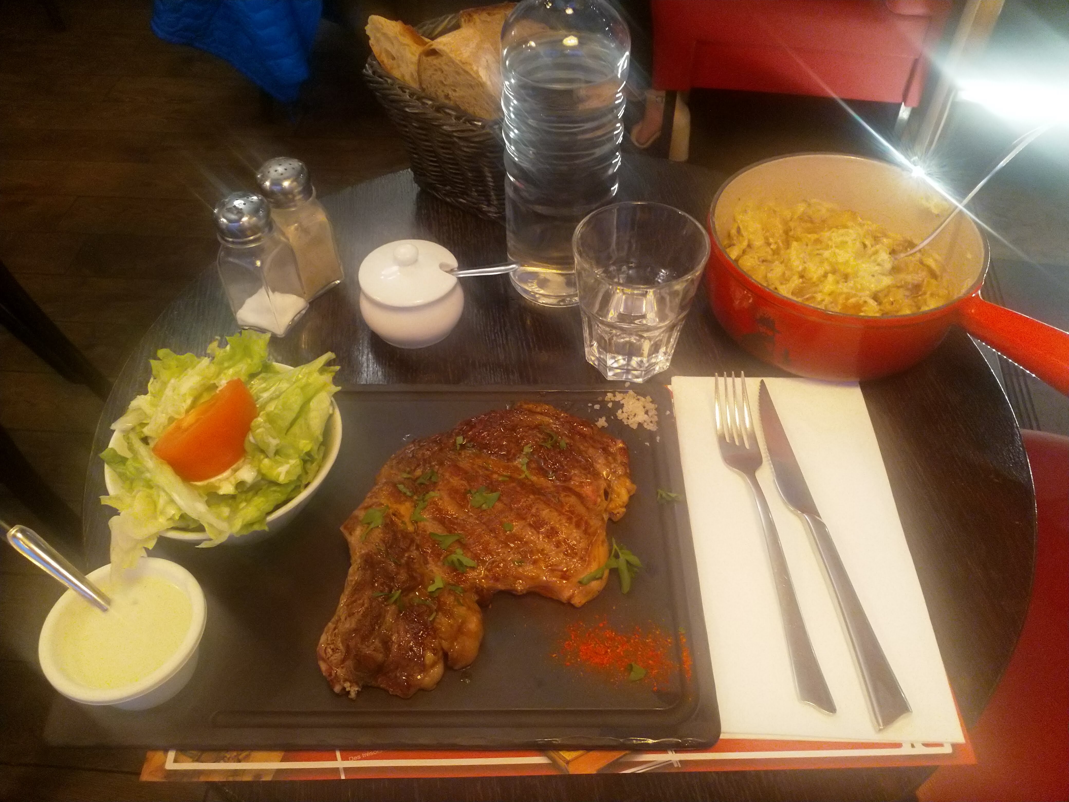 1 étoile pour l'accueil, la viande plein de nerfs, donc pas mangeable, on debarasse les assiettes sans commentaire et au moment de l'addition on vous dit fallait le dire Aucun geste commercial Sauces au choix limité, picon biere on voit à travers, dosage à revoir. Une fois, pas 2