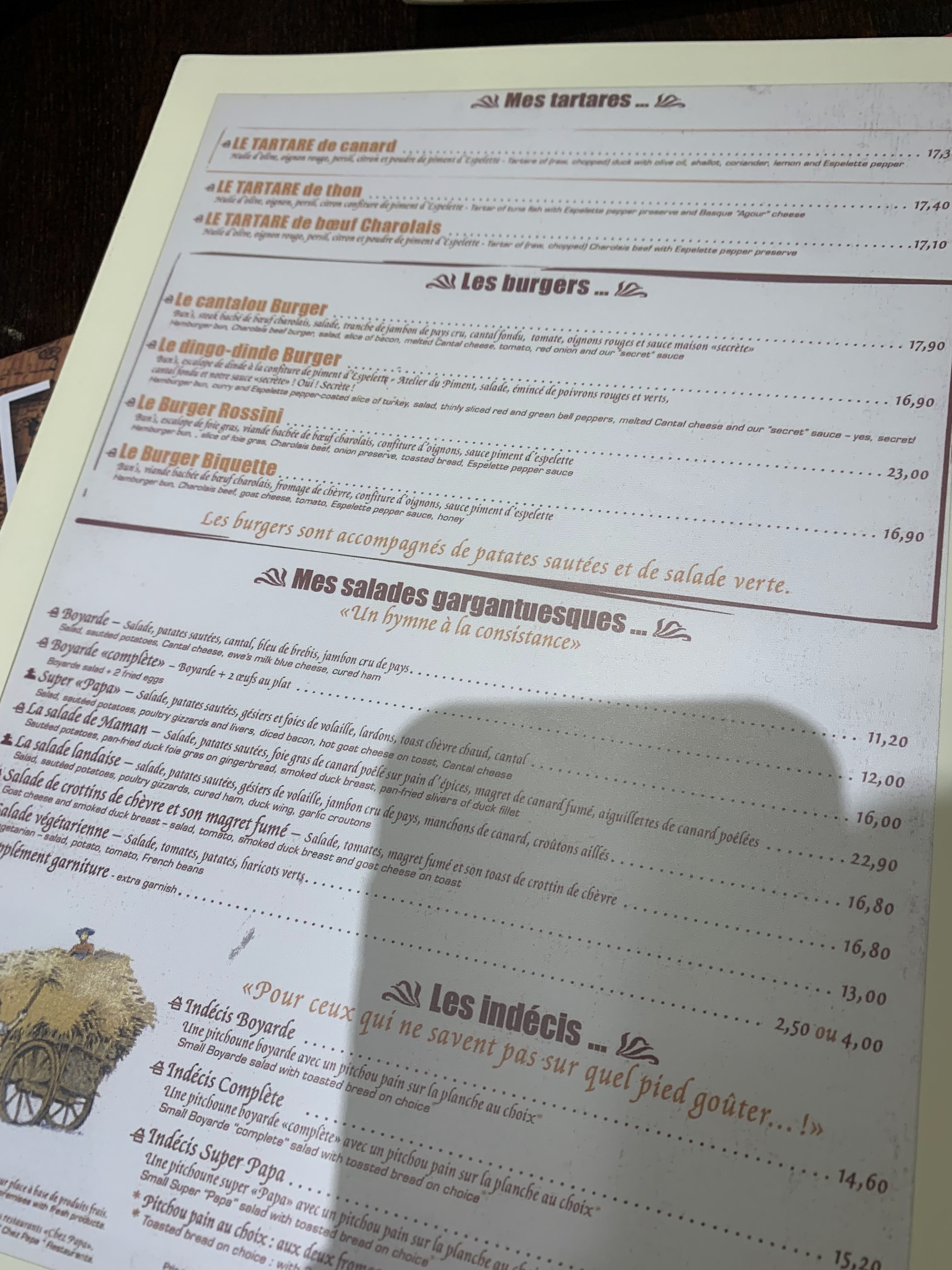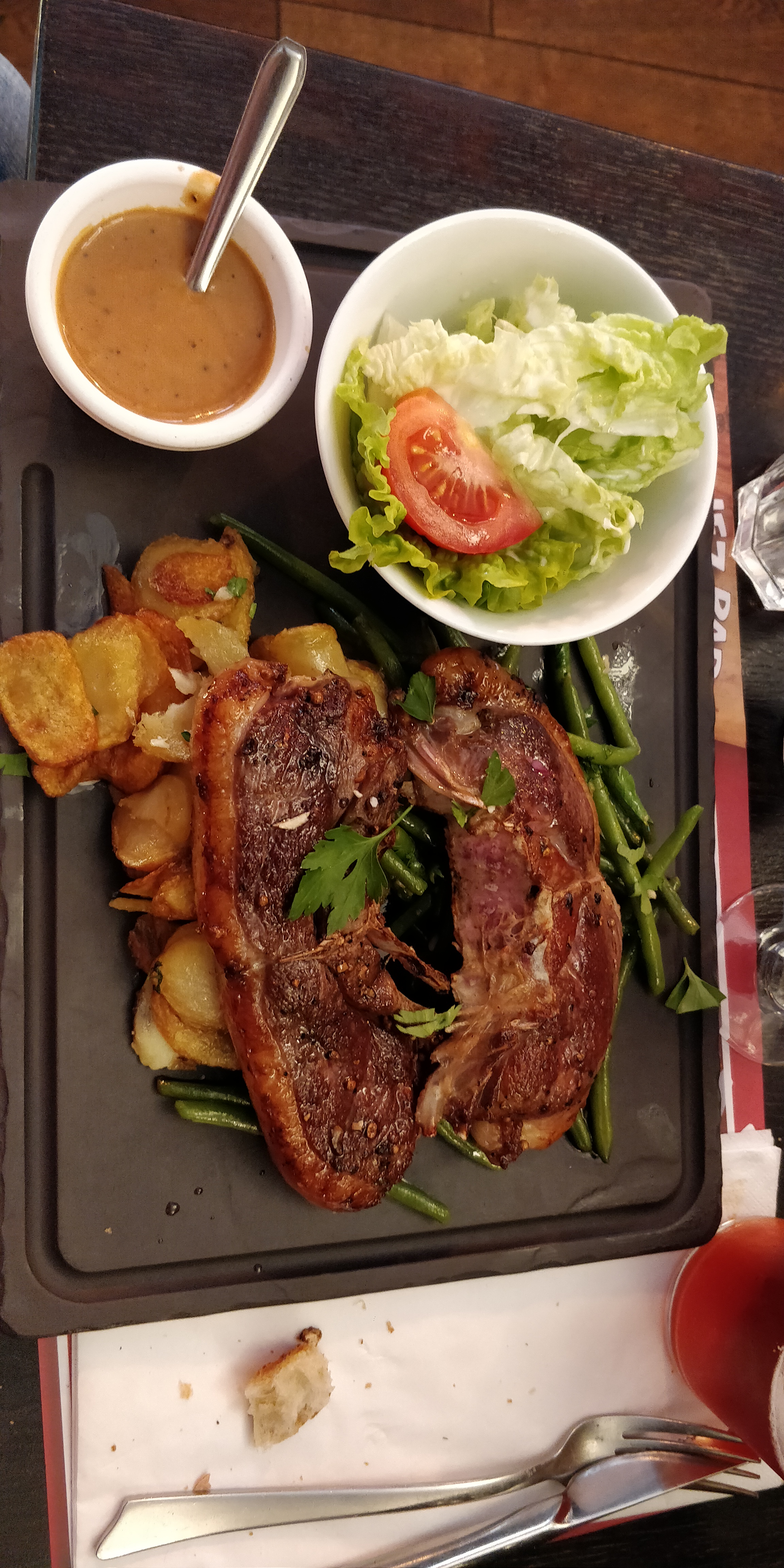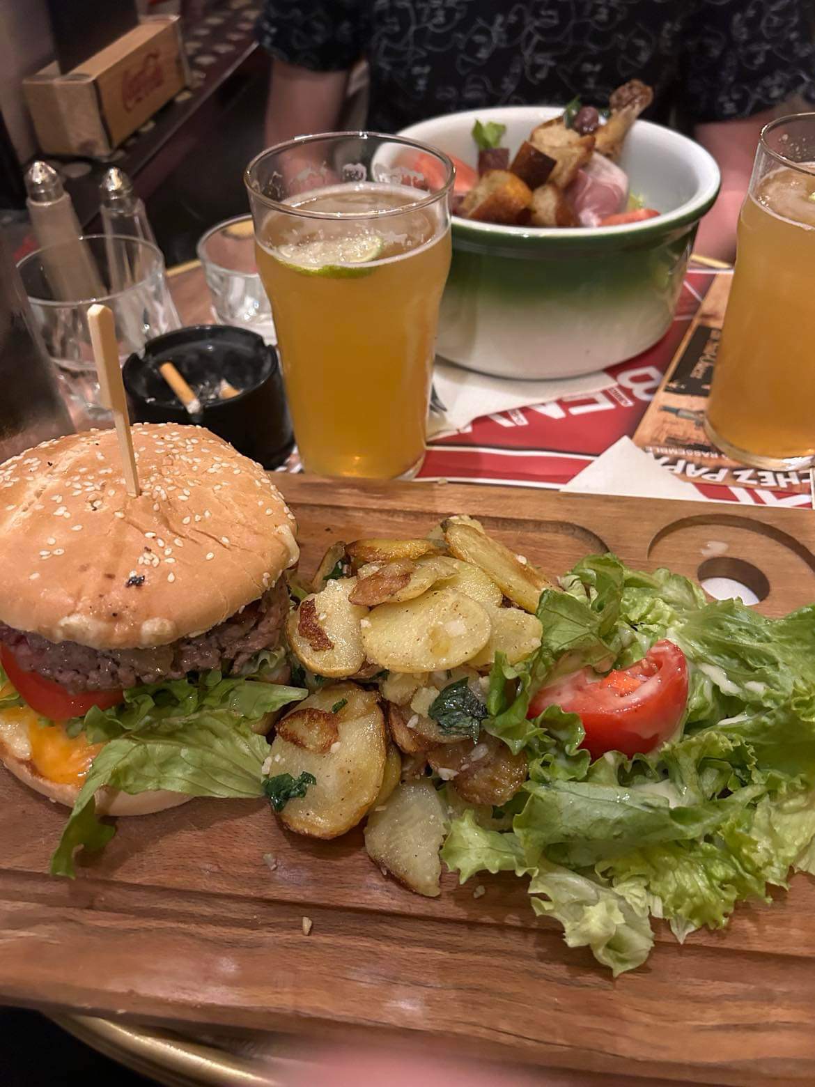 Sympa, très bon et abordable. La salade landaise pantagruesque l est vraiment ! Il y a tellement de restaurants moyens et hors de prix à Paris..des lieux comme chez papa doivent être recommandés !
