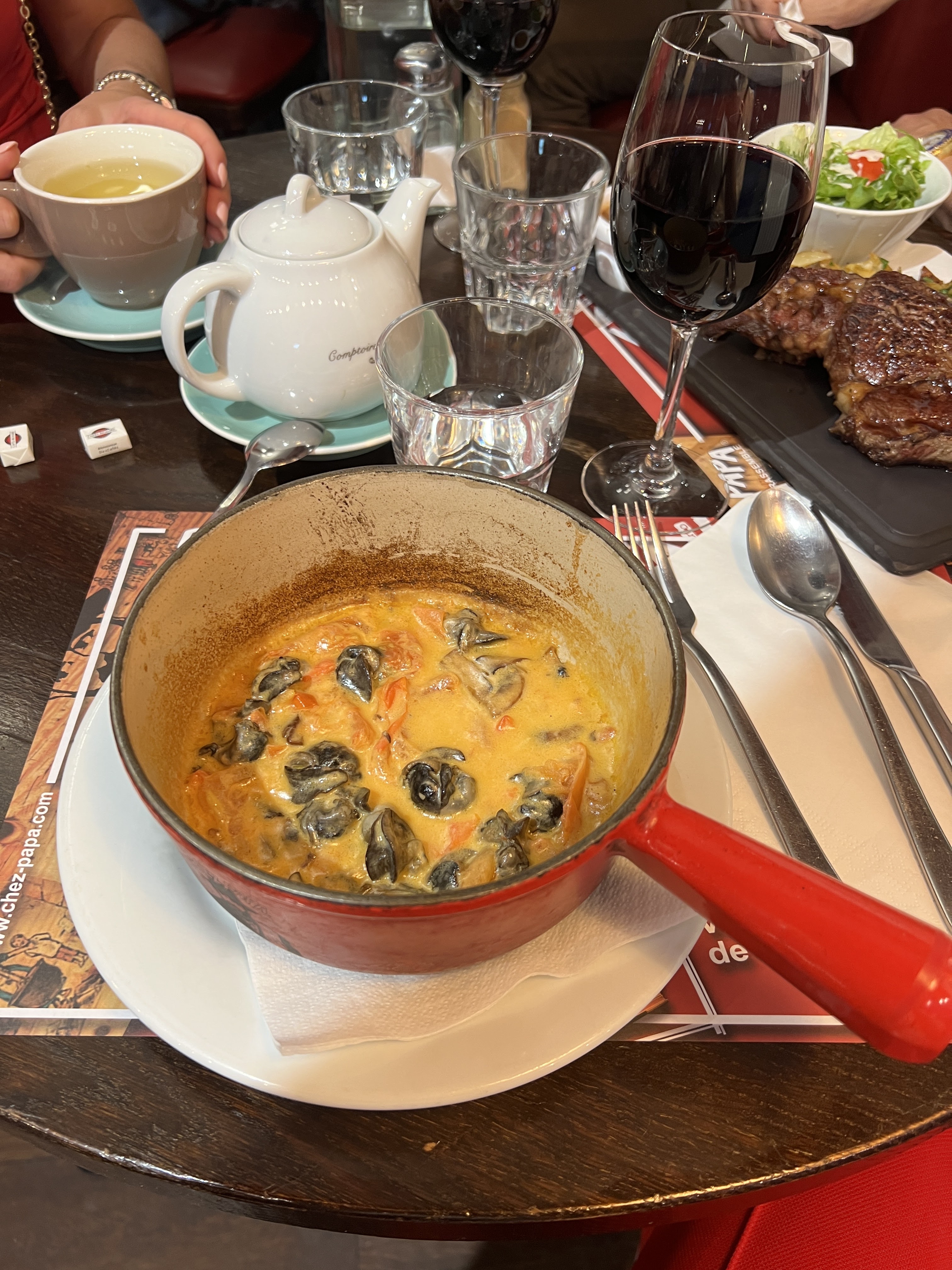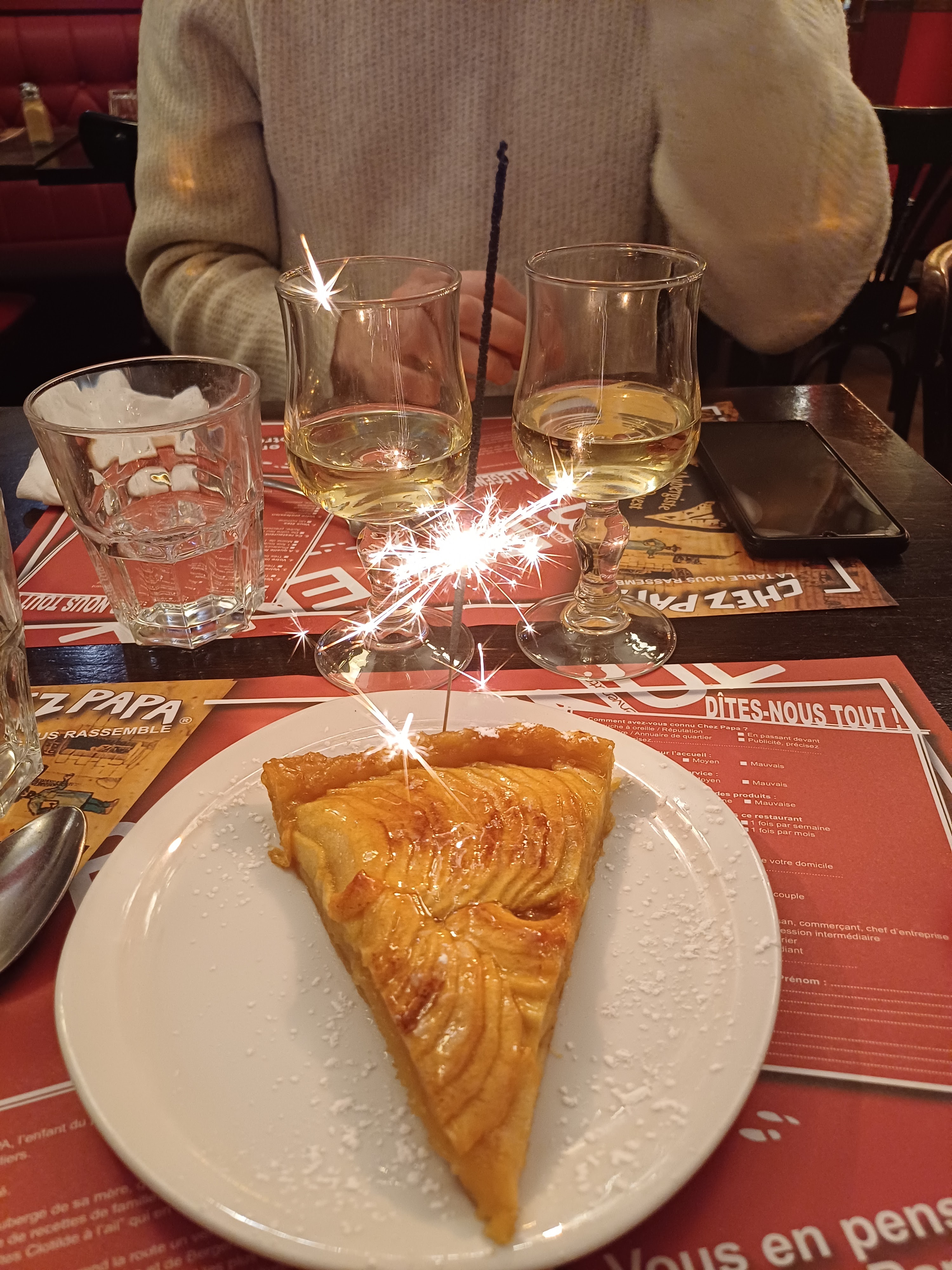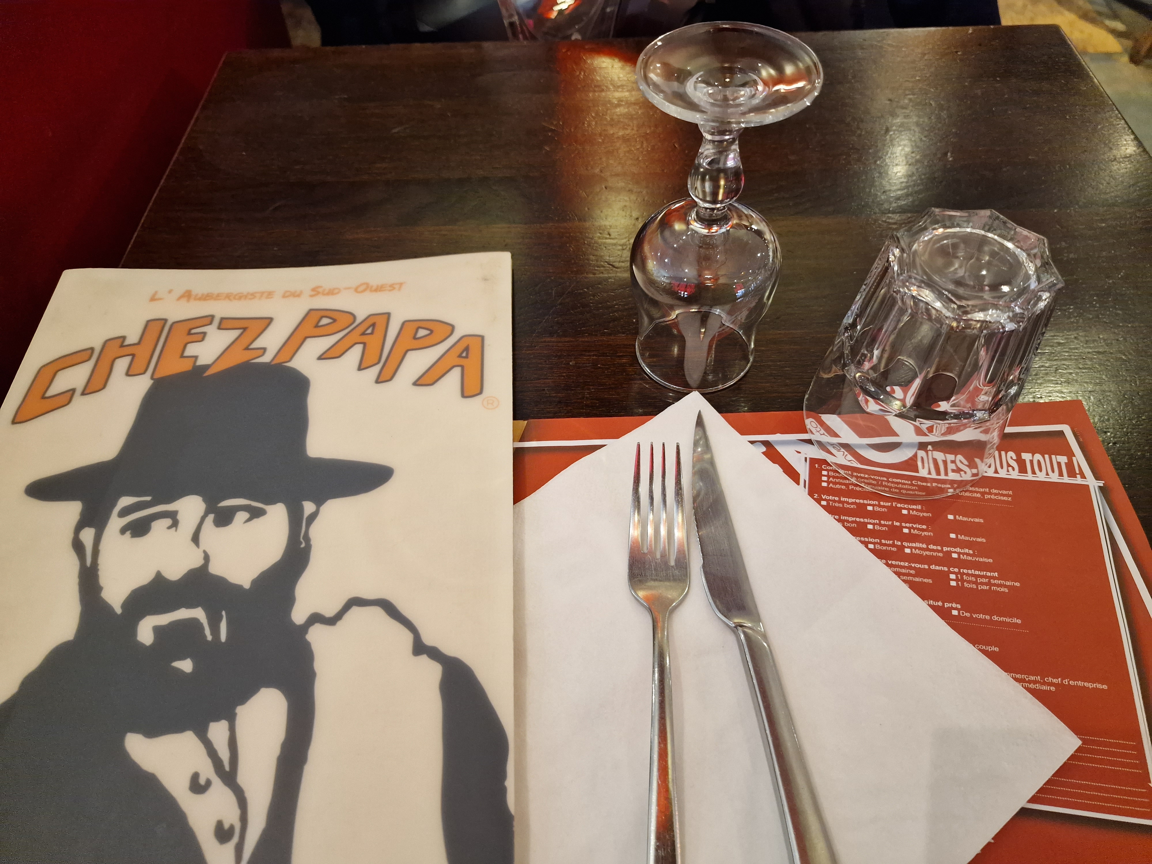 Un pur bonheur... une ambiance plus que sympathique, un accueil sans pareil où l'on se sent chez soi... des plats généreux autant que délicieux, des p'tits vins qui méritent le détour, le tout à des prix très abordables... Très franchement, si nous devions remonter sur Paris, c'est sans la moindre hésitation que nous retournerions Chez Papa dans le 9ème. Merci à toute l'équipe de nous avoir accueilli comme vous l'avez fait. De gros bisous de la part des sudistes...