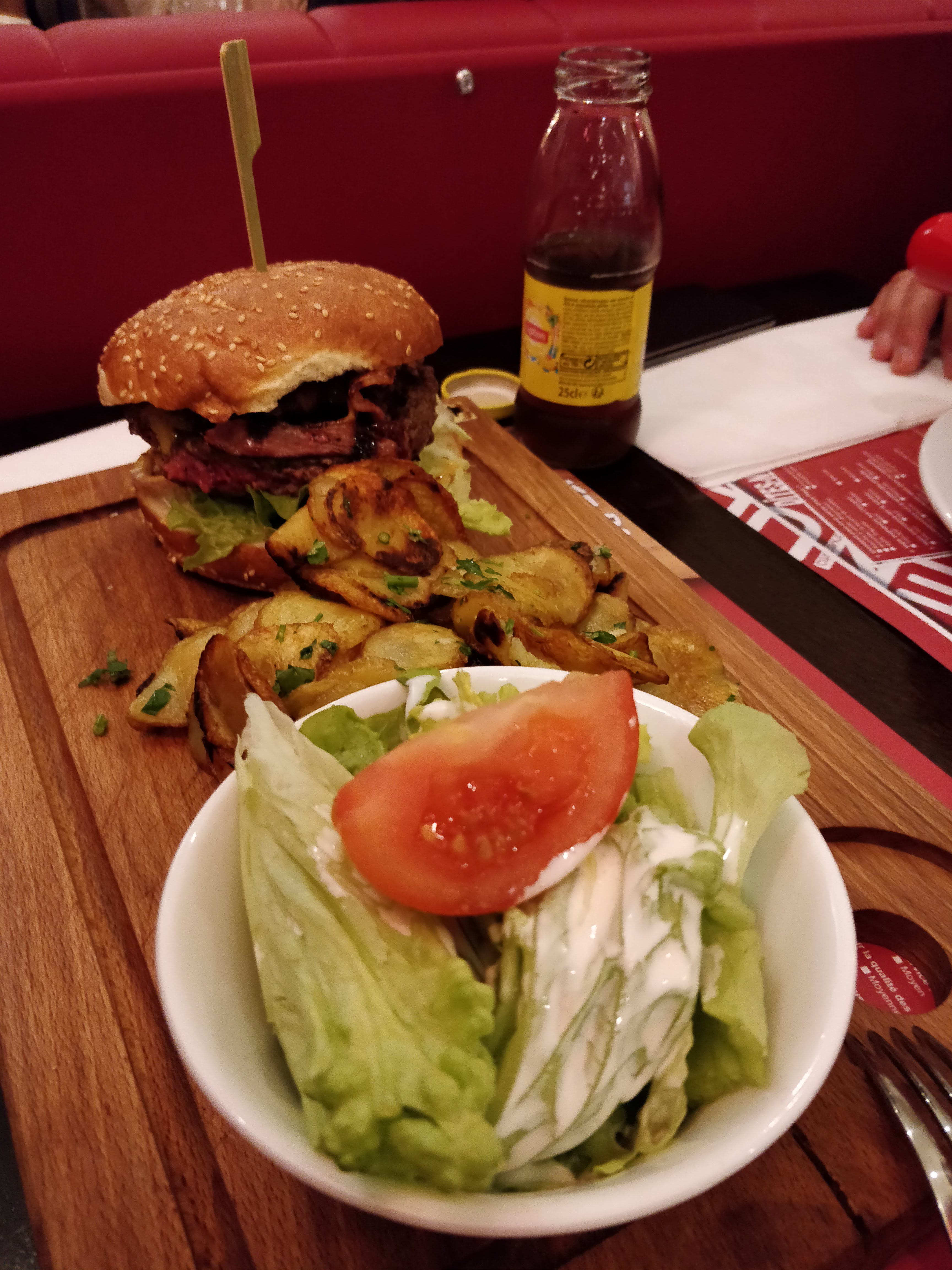 22,30 pour un burger et un Schweppes, m'ont ils fait payer le renvoi de mon plat en cuisine car la cuisson n'était pas celle que j'avais demander ? Première fois que je vois ça, je ne reviendrai pas.