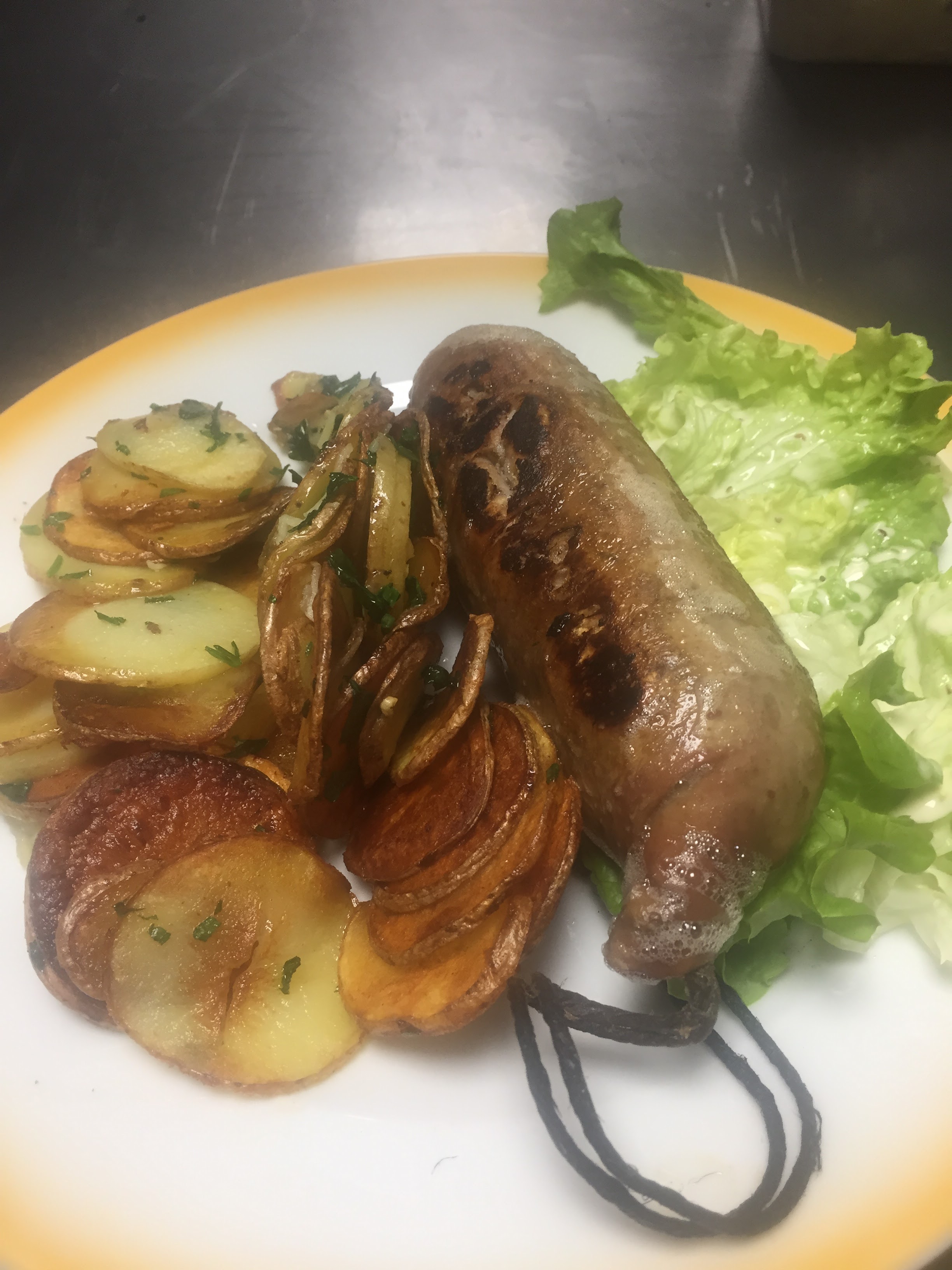 Avant d’aller au théâtre rue de Clichy pour voir Bérangère Krief (au passage exelentissime et bonne crise de rire de bout en bout), nous nous sommes arrêtés dans cette brasserie à proximité du théâtre… C’était délicieux, copieux…. Une andouillette excellente… les pommes de terre sarladaises un peu froides… je l’ai dit au serveur qui a réglé le problème et avec le sourire… Je recommande