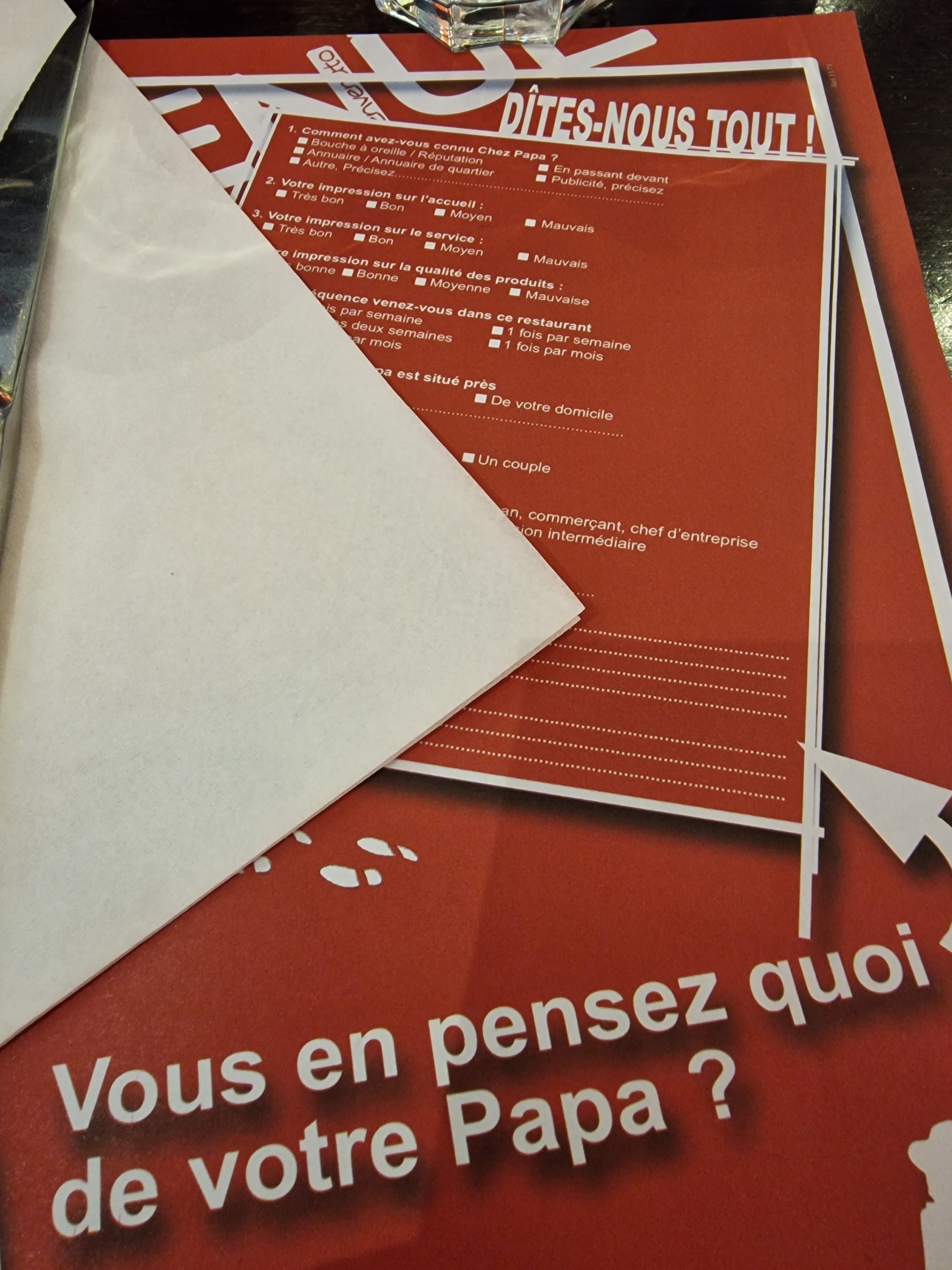 Bonssoir M ÉRIC vous avez manger dans quel REstaurant de Chez papa merci de me répondre ou de me téléphoner au 0607082852 bien merci à vous car je pence que vous avez pas manger Chez papa 9 pouvez vous m appeler