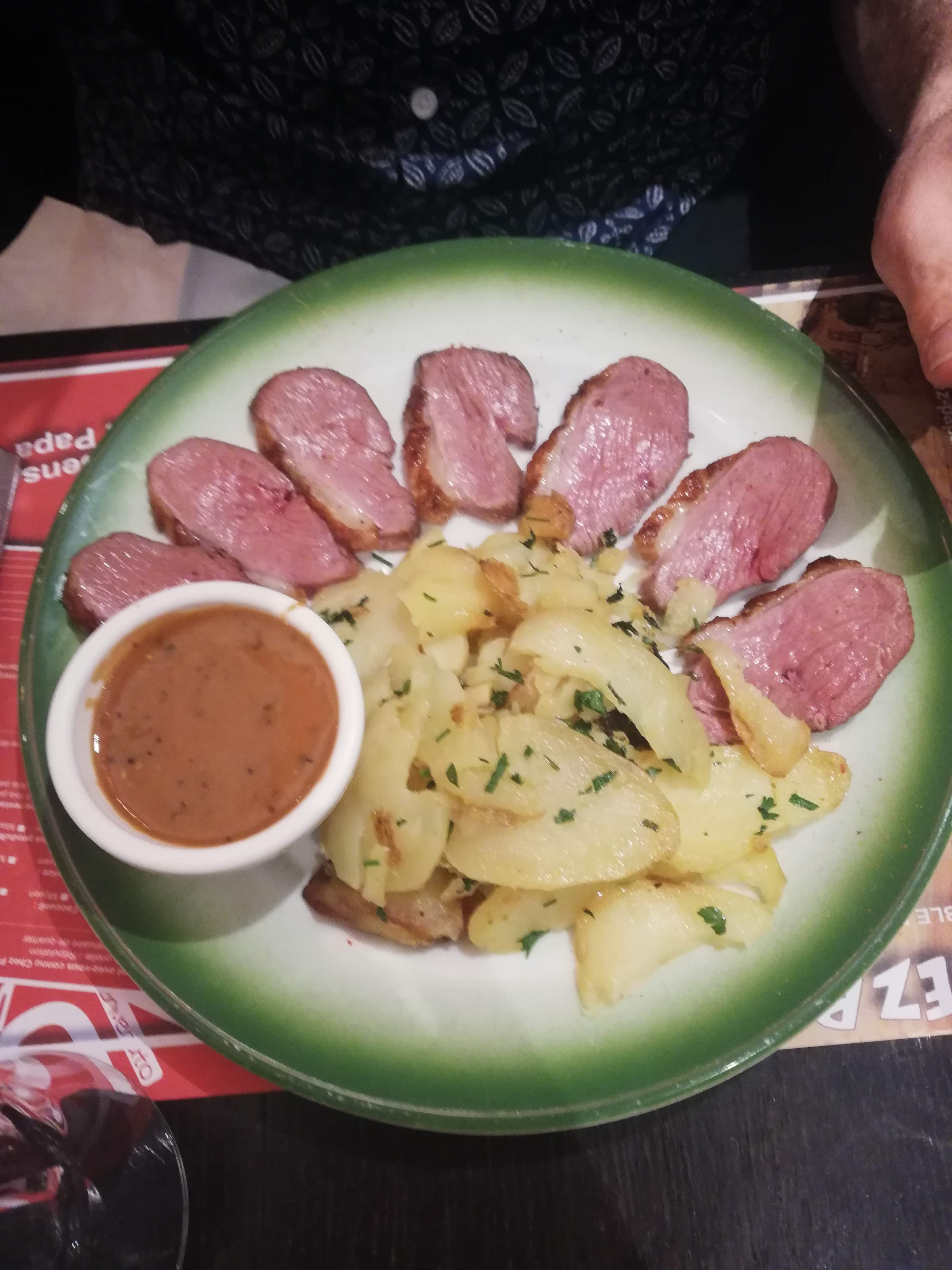 Quand on écrit un magret de canard sur la carte à 19e, on ne pense pas recevoir 6 très fines tranches de magret qui ne correspondent même pas a 1/4 de magret. J'ai pas l'habitude de sortir du restaurant en ayant faim après un plat + dessert