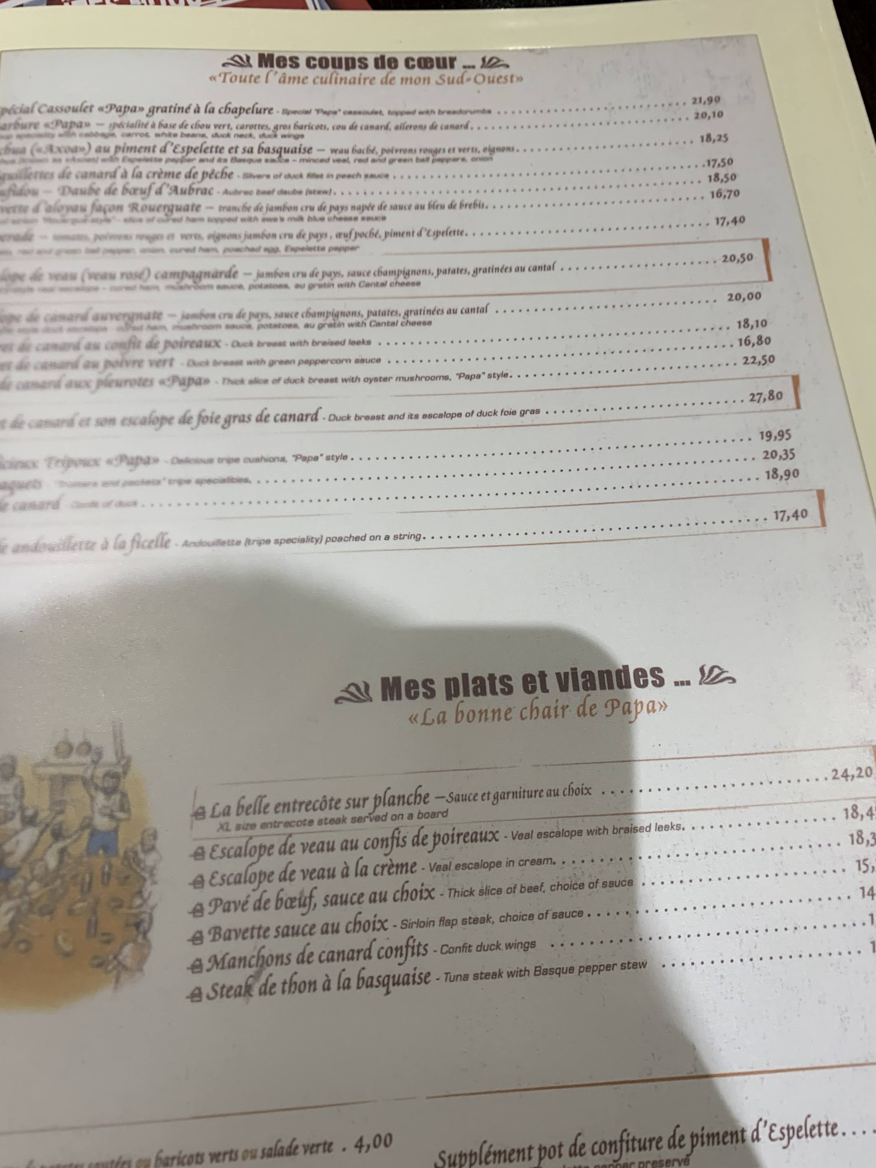 On trouve ici quelques grandes spécialités du sud ouest et c'est plutôt une réussite. Les pommes de terre sautées à l'ail et au persil sont incontournables. Des menus aux prix raisonnables sont disponibles et un choix de vin très correct, à la carte les prix sont nettement plus élevés. Le restaurant reste malgré tout très sonore et certaines tables trop serrées.