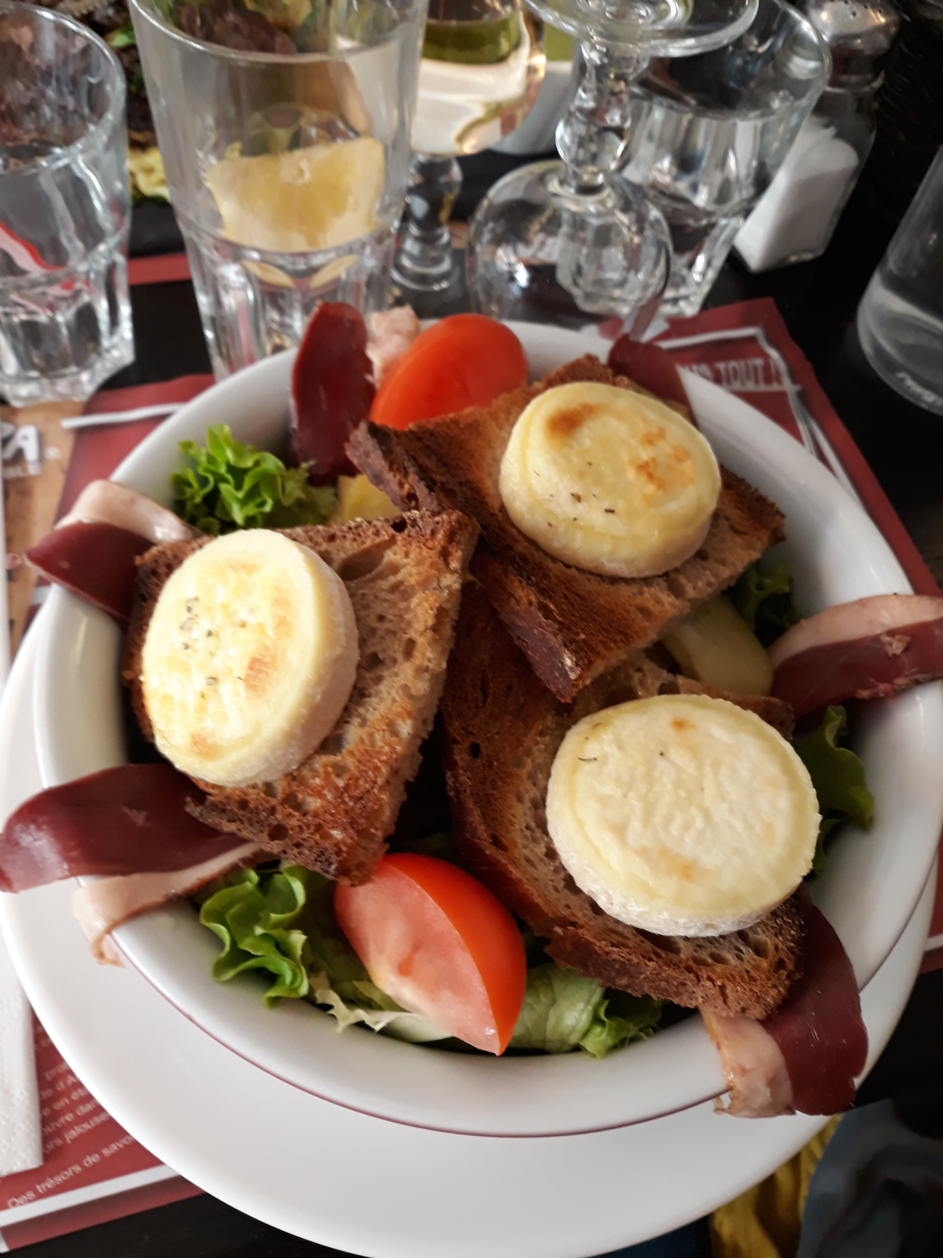 Nous avions peu de temps pour manger avant d'aller au théâtre et ils ont tout fait pour que nous soyons à l'heure. J'avais commandé une salade Landaise. Et bien que je sois un gros mangeur j'ai eu du mal à finir. La garniture de gesiers étaient généreuse. Si vous venez en voiture, prévoyez pas mal de temps afin de trouver une place pour stationner.