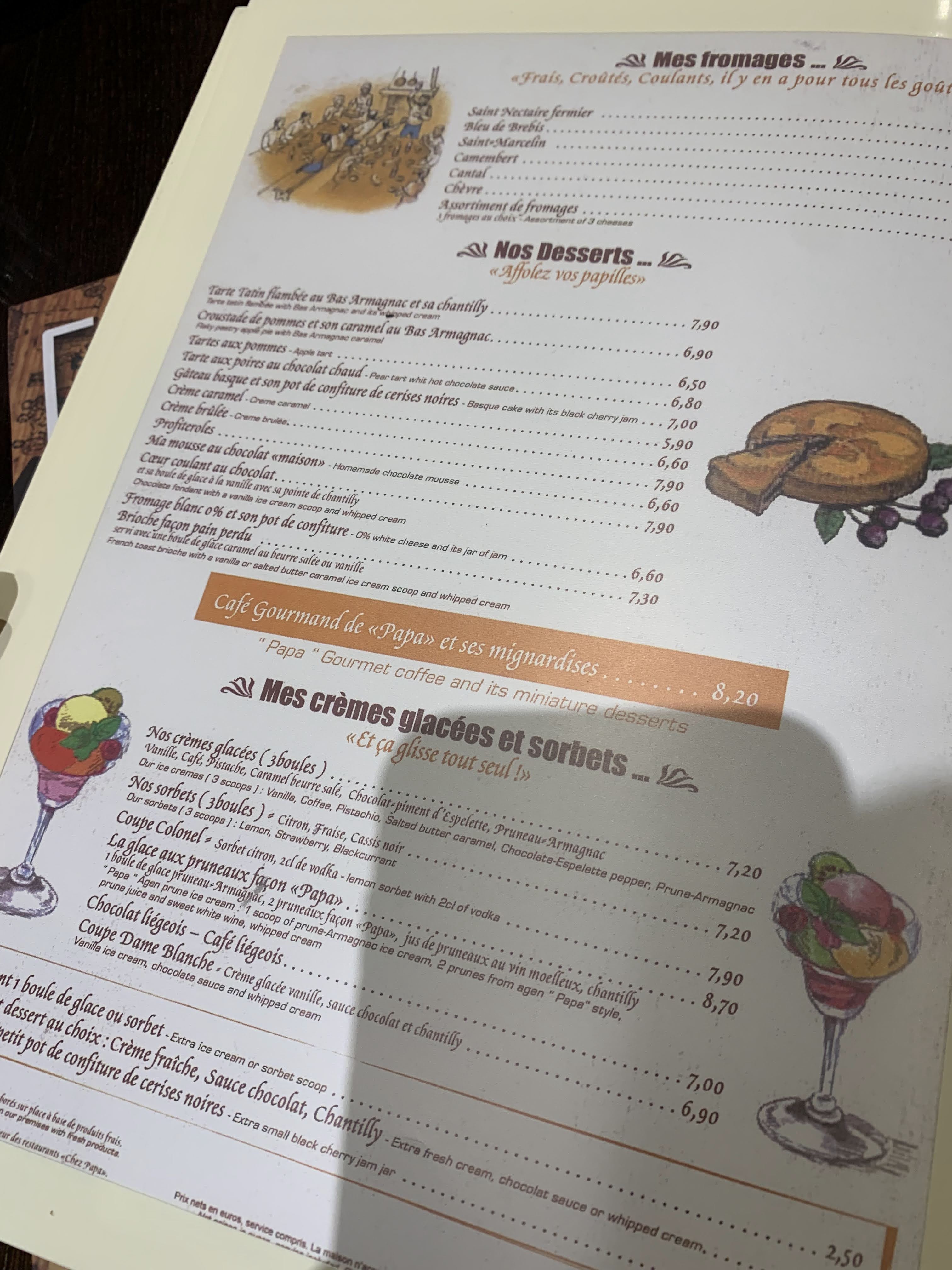 La franchise chez Papa fidèle à elle même, les plats ne changent pas et restent fidèles à eux même, foncez sur les salades gargantuesques sans hésitez. Il y a un choix sympathique de vins plutôt abordables et il ne reste malheureusement jamais beaucoup de place pour le dessert (qui ressemble à du congelé industriel pour les 3/4). Un bon rapport qualité-prix