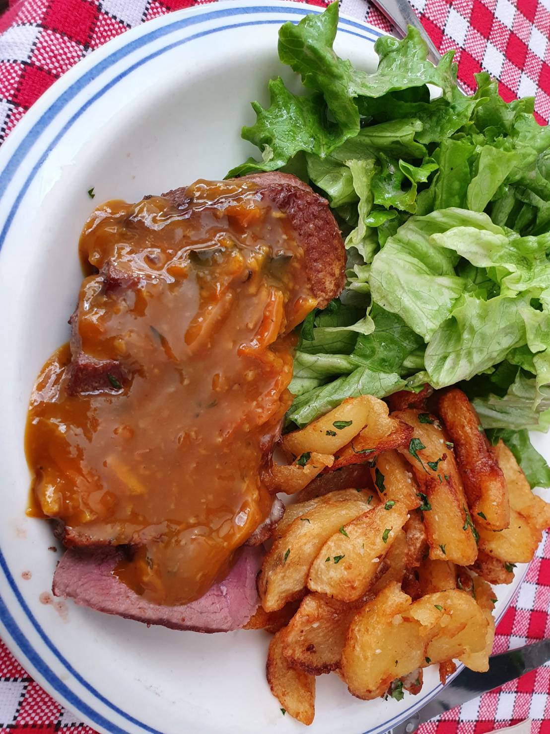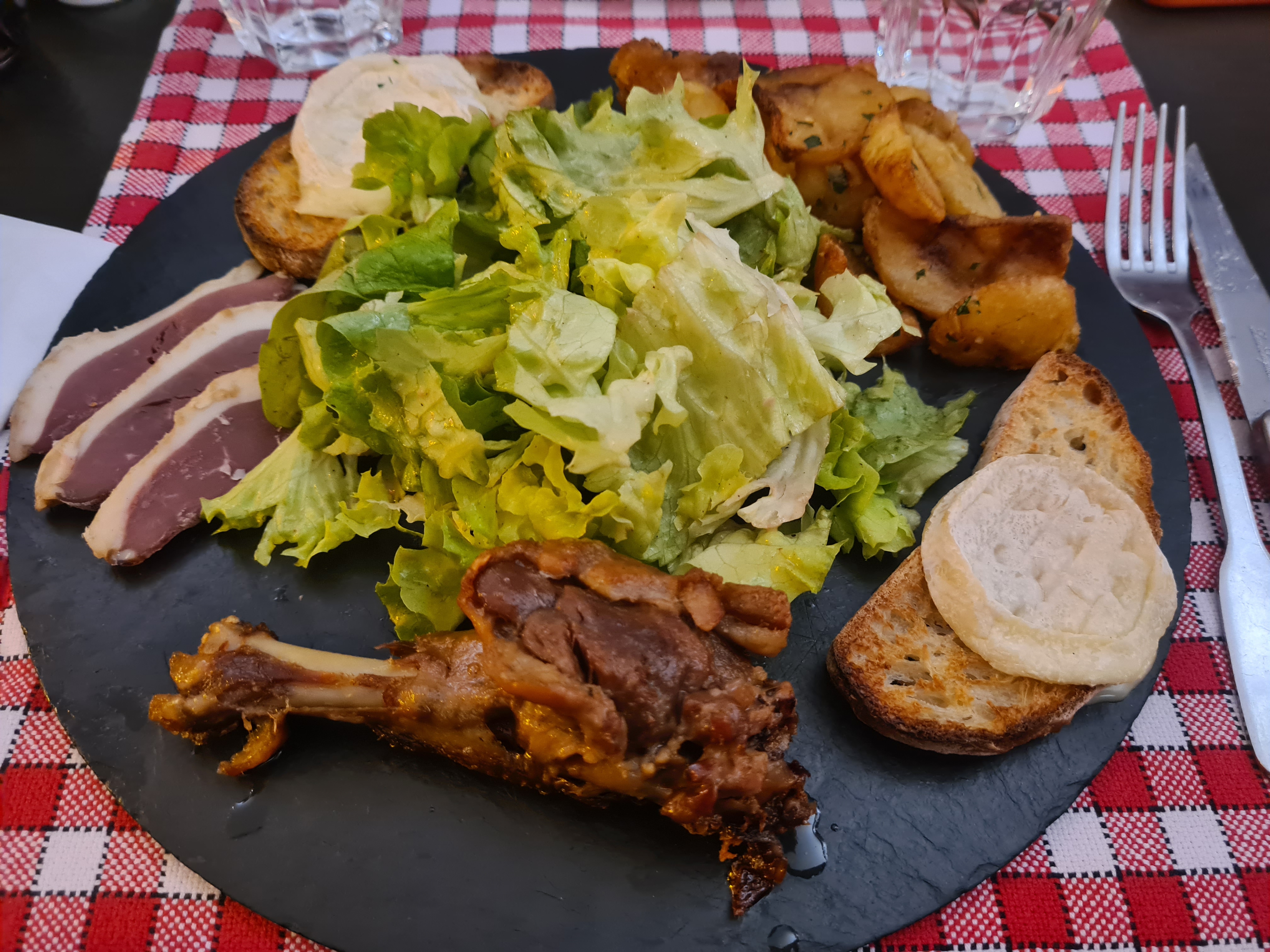 Nous avons découvert le restaurant spontanément sur le chemin du retour. Le propriétaire parlait même un peu allemand et a fait un énorme effort pour s'assurer que nous comprenions exactement la carte. Le restaurant se spécialise principalement dans le canard - et vous pouvez le goûter. La nourriture était vraiment excellente et le service a été extrêmement difficile, nous nous sommes sentis chez nous. Si vous avez envie de cuisine française authentique, c'est l'endroit qu'il vous faut :)