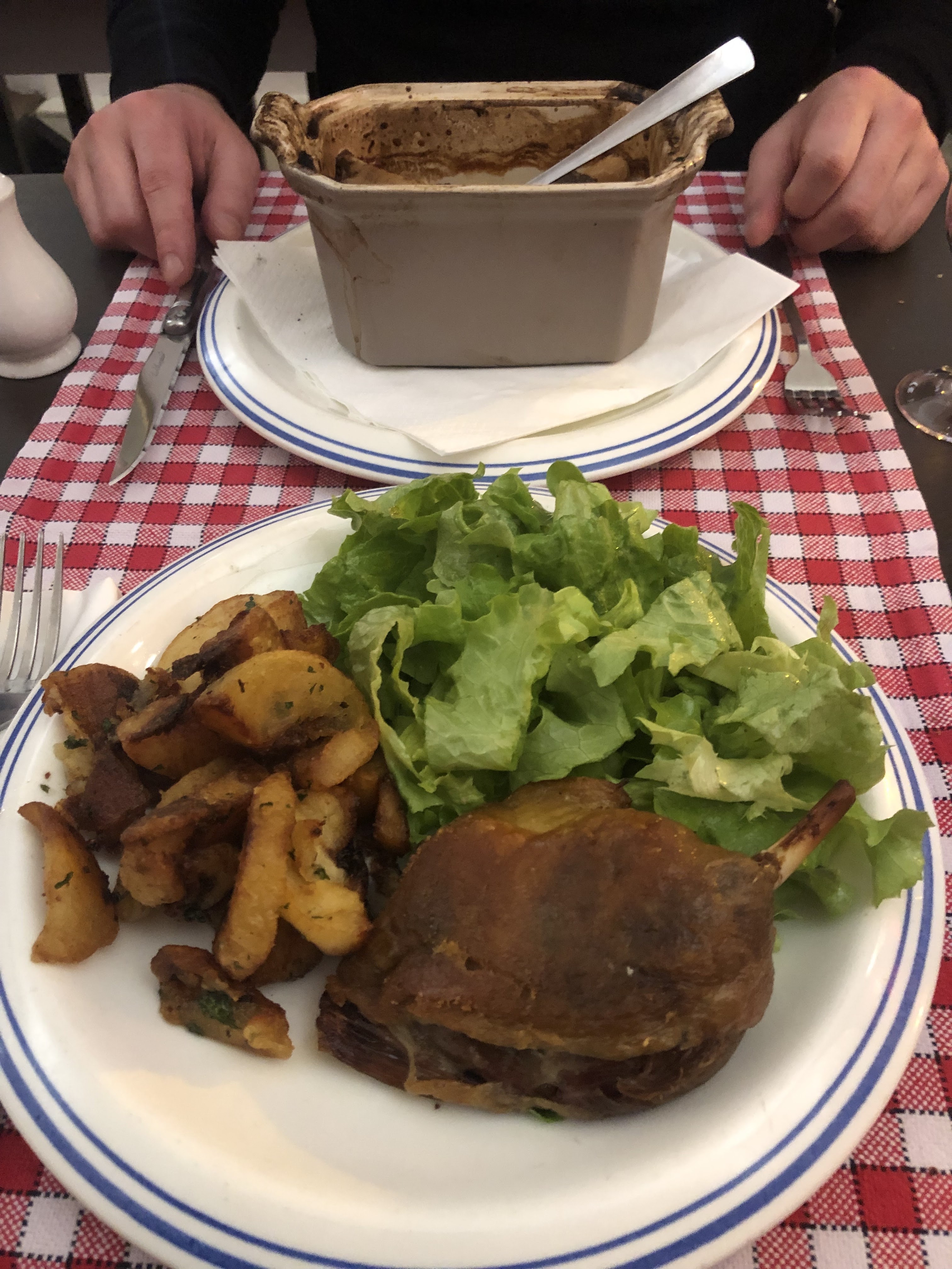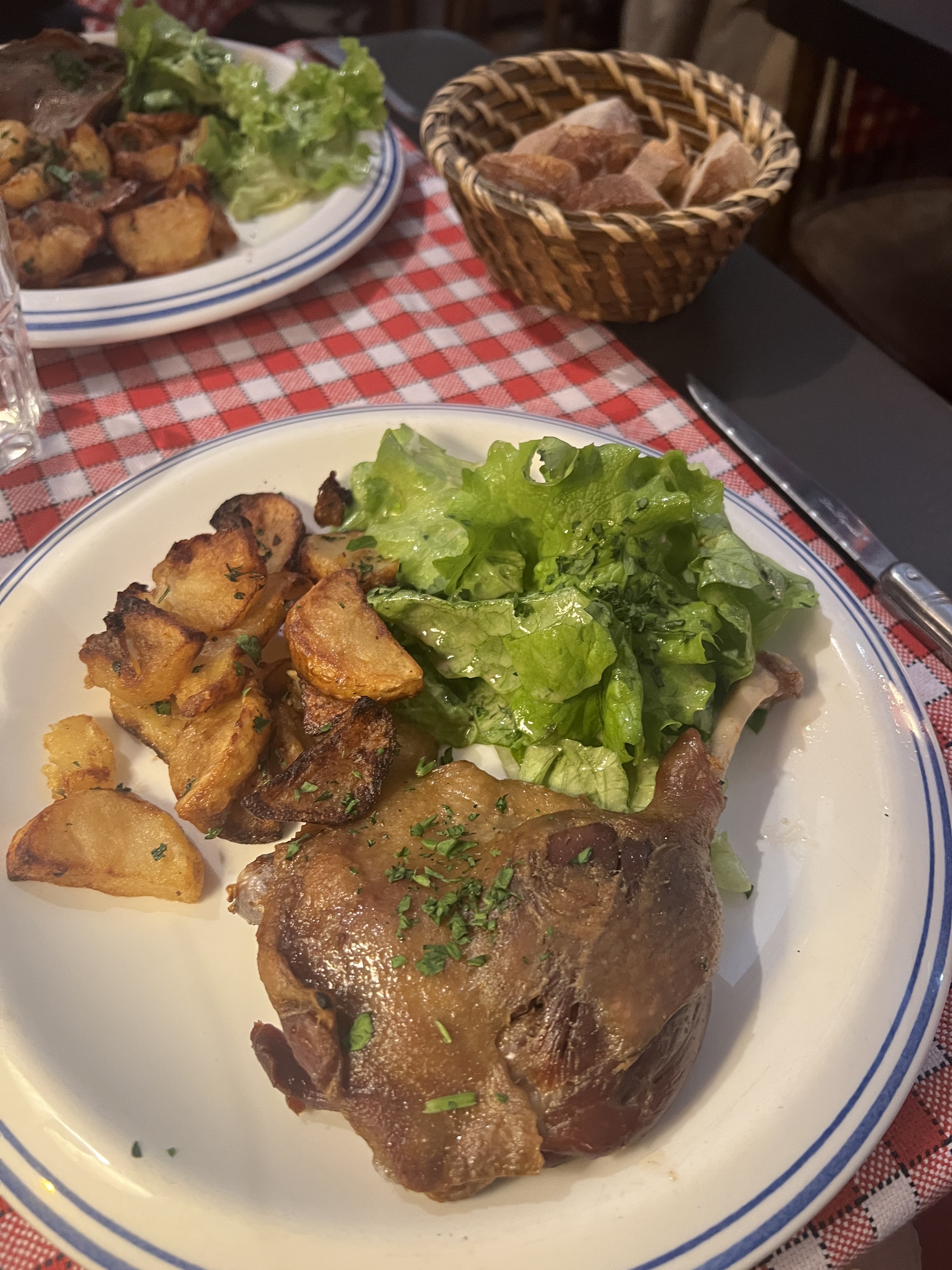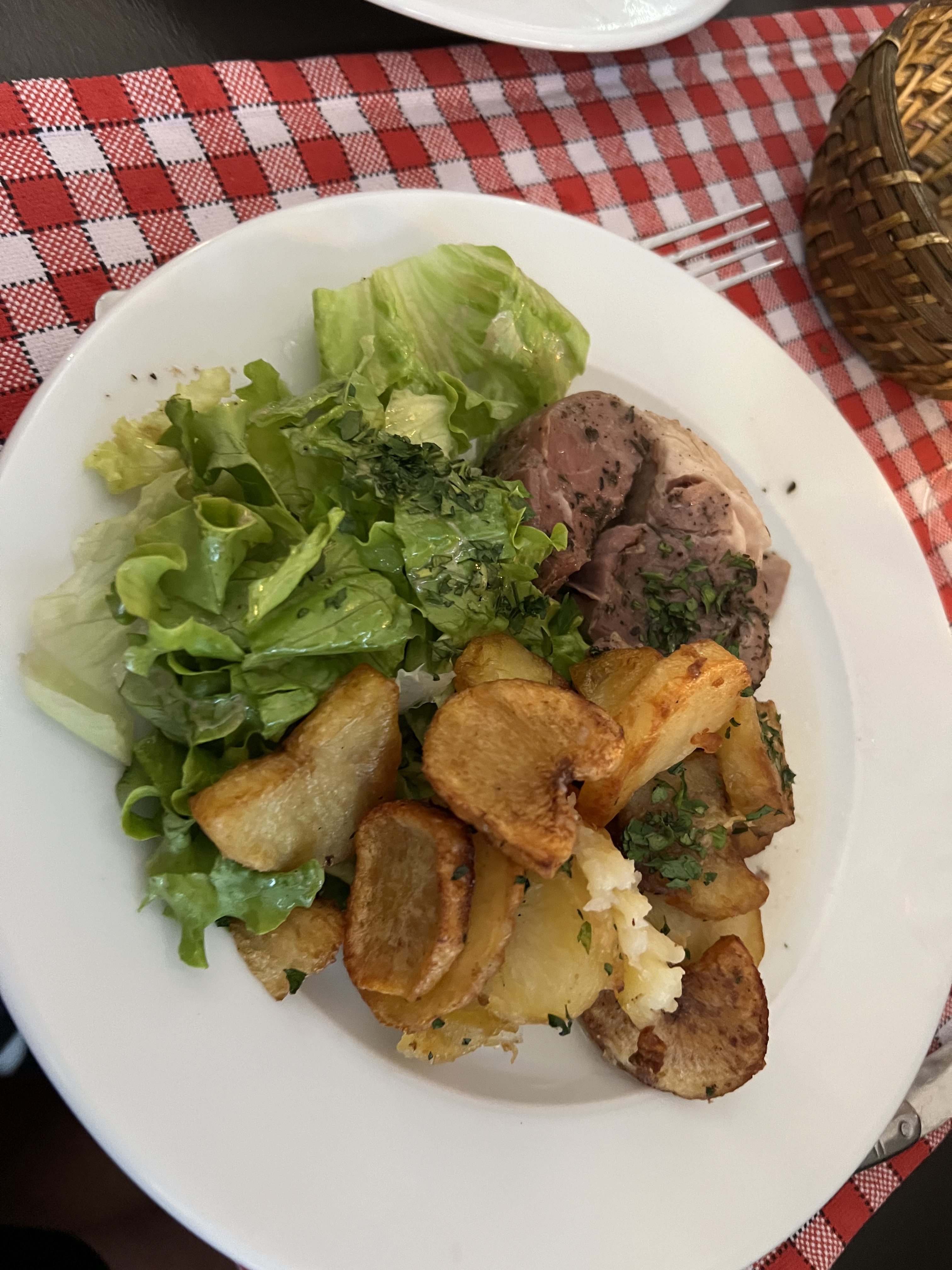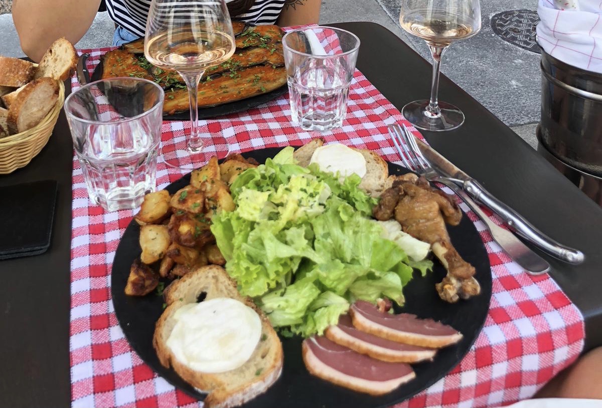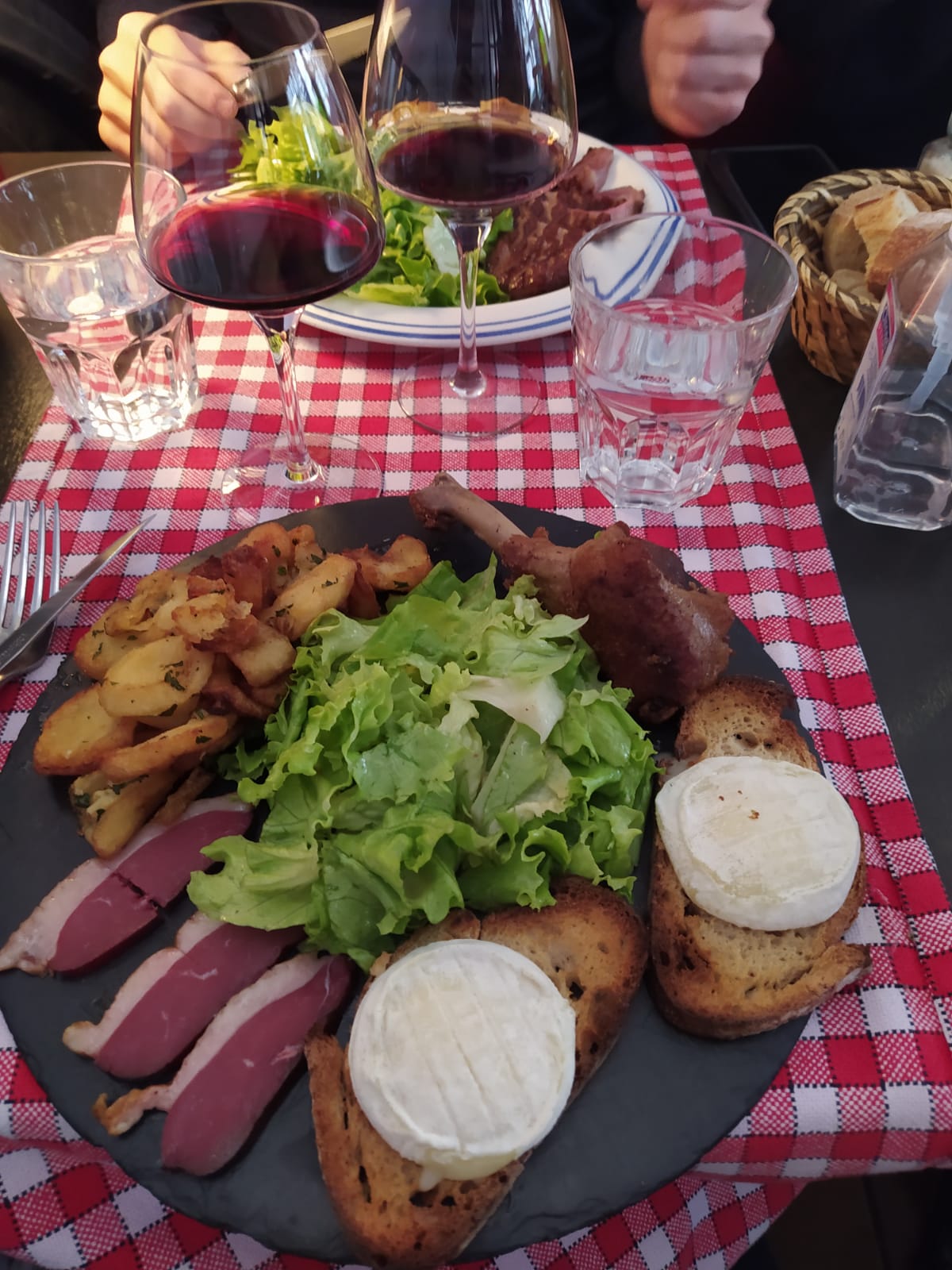 Bonne nourriture, service sympathique! Endroit petit et cosy, plats typiques de la région du Sud-Ouest. J'ai adoré mon assiette de canard, pommes de terre sautées à l'ail, boudin noir et salade verte fraîche délicieusement assaisonnée ! L'apéritif avec du chèvre chaud était également parfait, ainsi que le vin rouge de leur carte. Il y avait des pommes caramélisées avec de la glace en dessert, très sympa ! Super pain !