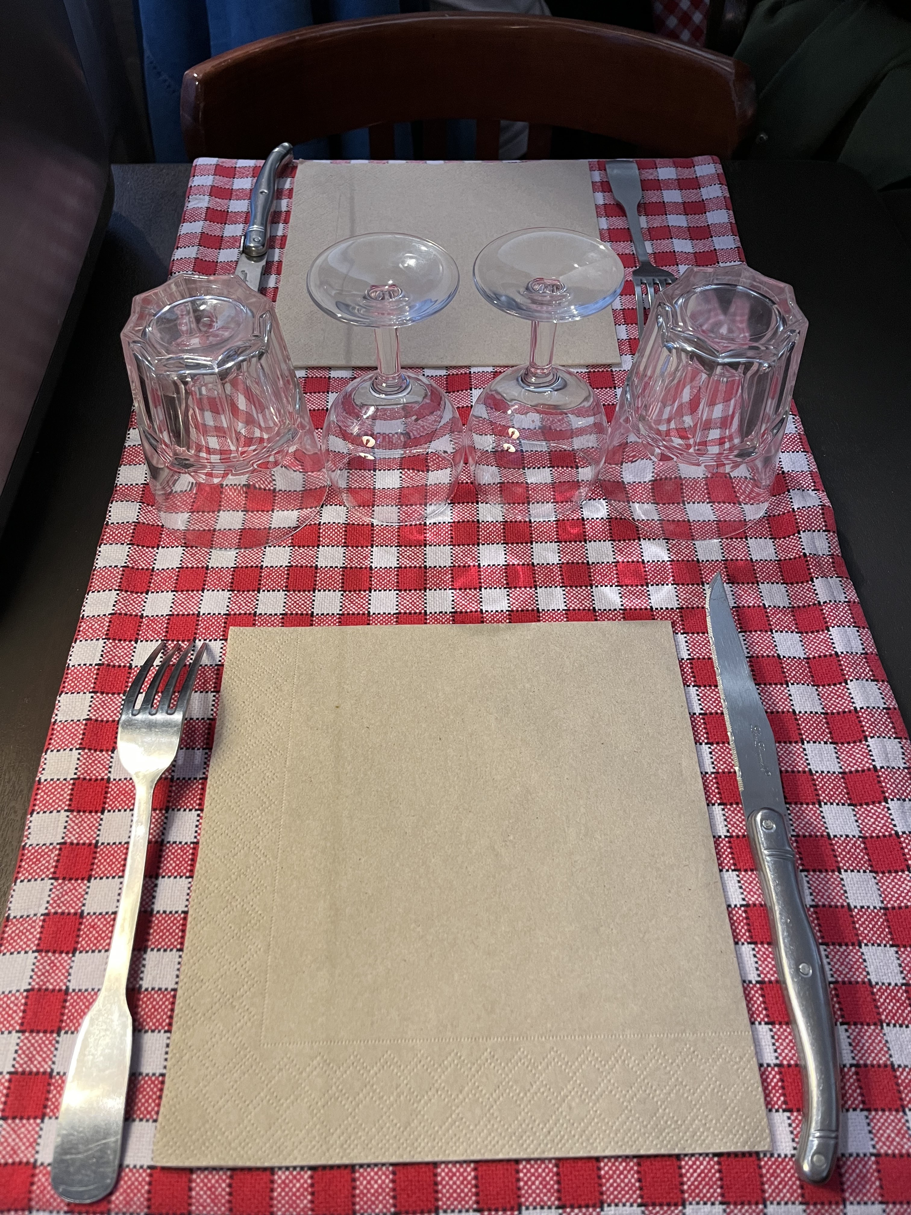 SI VOUS NE PARLEZ PAS FRANÇAIS, N'Y ALLEZ PAS. Le vieux mec qui dirige l'endroit a connu des jours meilleurs et a été dépassé. Nous n'avons pas eu le vin que nous avions commandé avec le dîner, nous avons donc... eu de l'eau. avec ces délicieux plats qui méritaient vraiment mieux. Se la ve, je suppose.