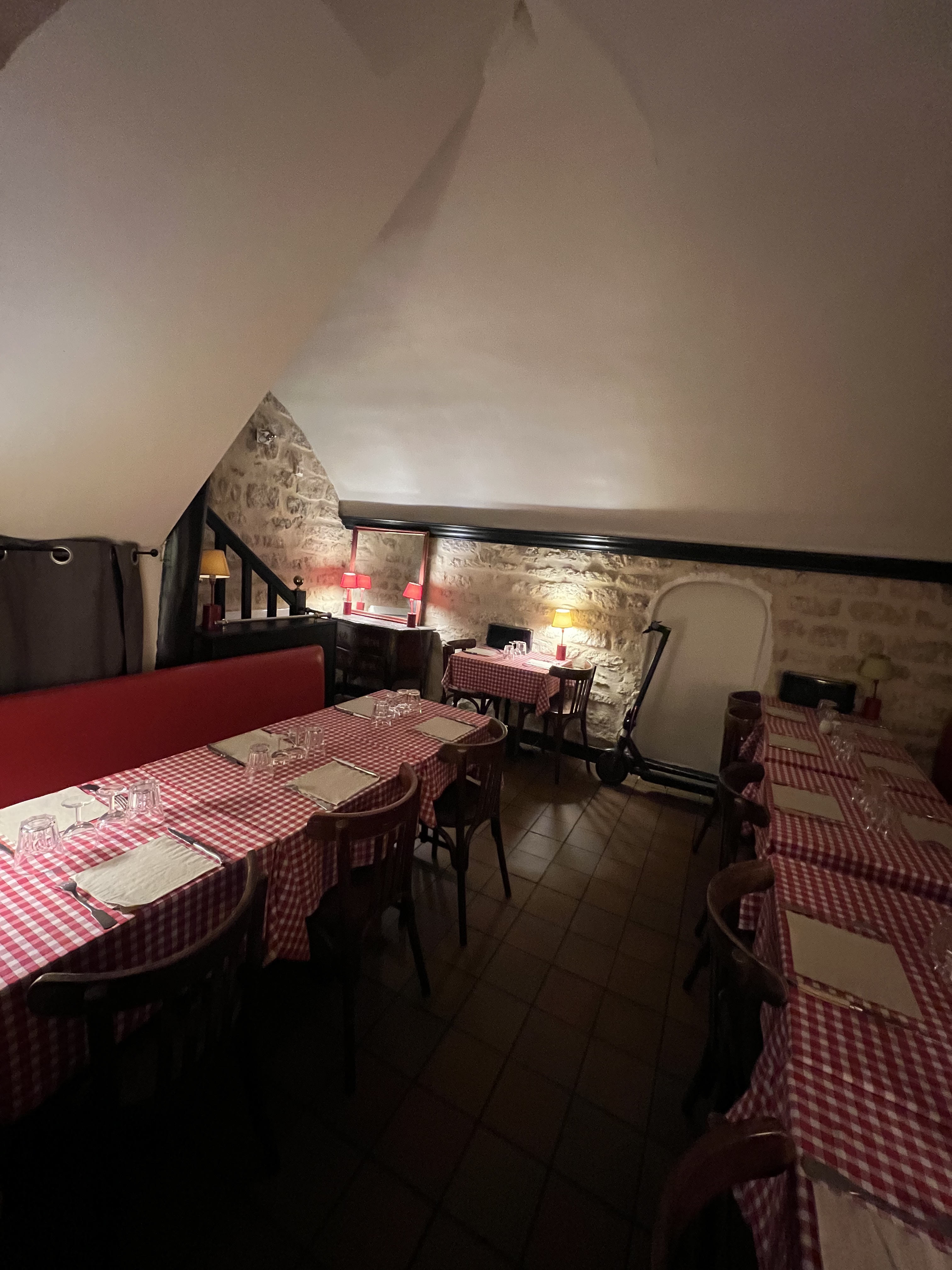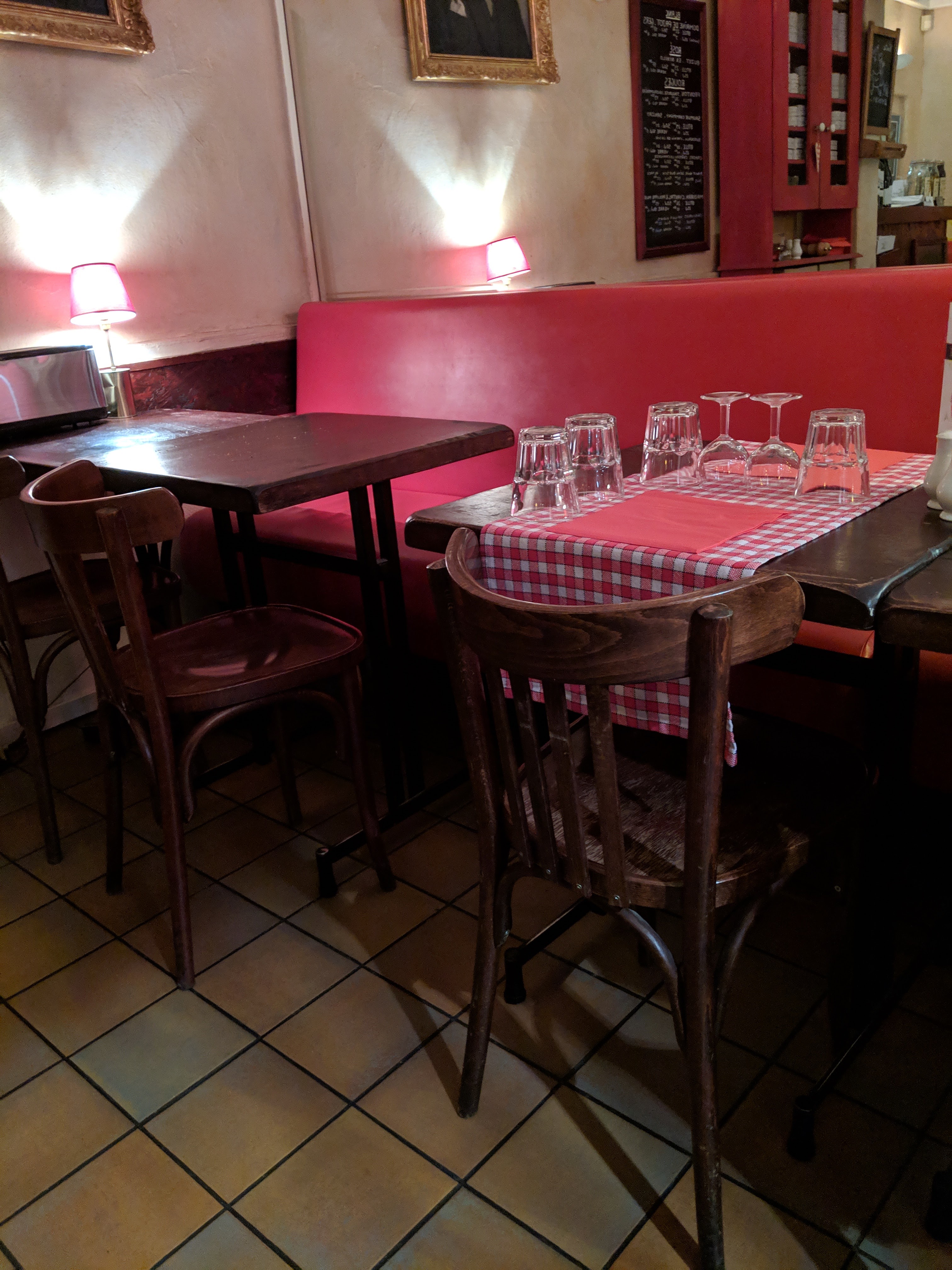 Une très bonne surprise. Nous sommes rentrés pour un déjeuner, avec un ami, un peu par hasard et ce ne fut pas une déception. La salle est plutôt claire et chaleureuse avec ces inoubliables nappes à carreau rouges. C'est silencieux et la rue est très calme. Le service est très bien, gentil et rapide. Concernant l'assiette, c'était bon et simple. Petite salade de lentilles aux gésiers très fondants. Rognons à la moutarde, pommes sautées et petite salade. C'est bon. Simple mais très bien fait. Le fromage en guise de dessert était parfait. Café. Le tout pour 25 € par personne ce qui est raisonnable vu le cadre et l'assiette ainsi que pour le quartier qui n'est pas donné non plus. Beaucoup de charme dans cette salle et ce restaurant aux accents sud-ouest parisiens. Une bonne surprise donc et j'y retournerai sans aucun doute. Un grand merci au patron. Je vous recommande enfin leur site qui recense leur histoire et leurs fournisseurs qui sont du quartier. Un dernier très bon point pour eux.