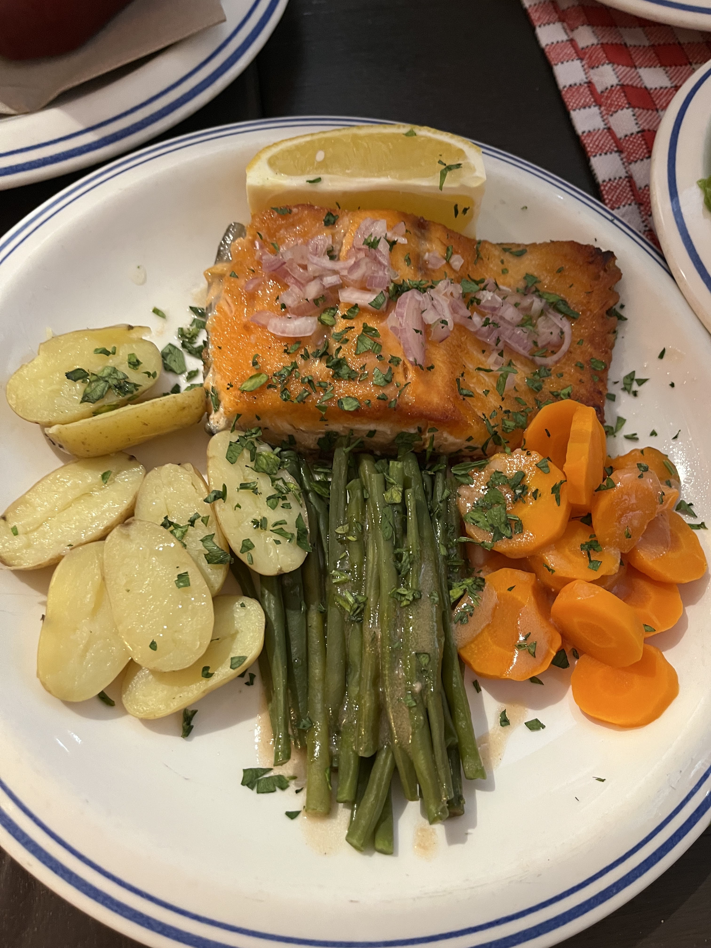 Mon mari et moi adorons le cassoulet et ce n'est pas quelque chose qu'on trouve souvent, même à Paris. C'était tout ce que nous espérions et bien plus encore ! L'apéritif de pâté de truite était incroyable et une grande portion aussi. Nous avons demandé à la serveuse de choisir notre vin et c'était un complément parfait à notre repas. La tarte aux pommes avec de la glace était trop délicieuse pour la laisser passer. Nous reviendrons certainement à notre retour à Paris.