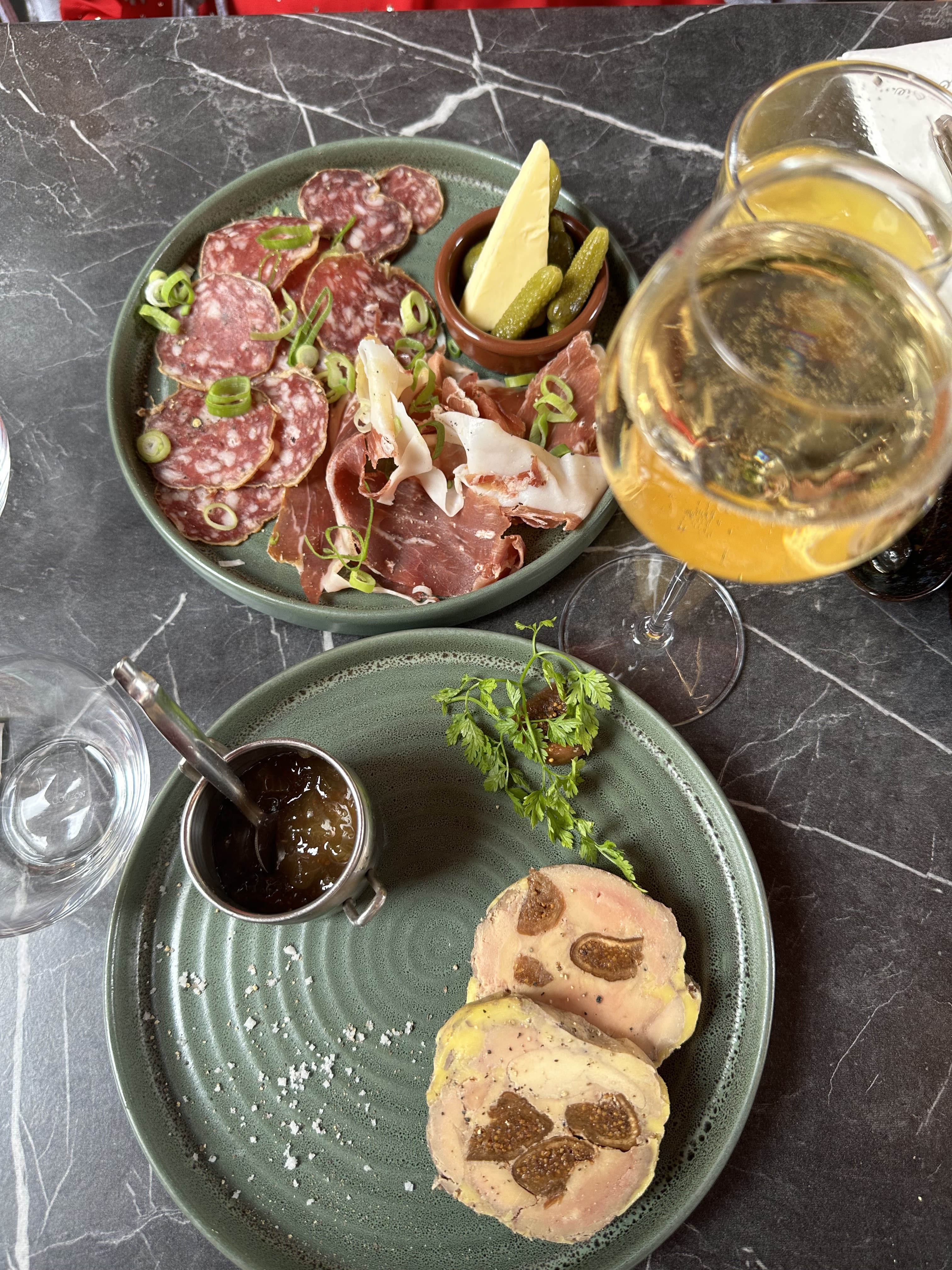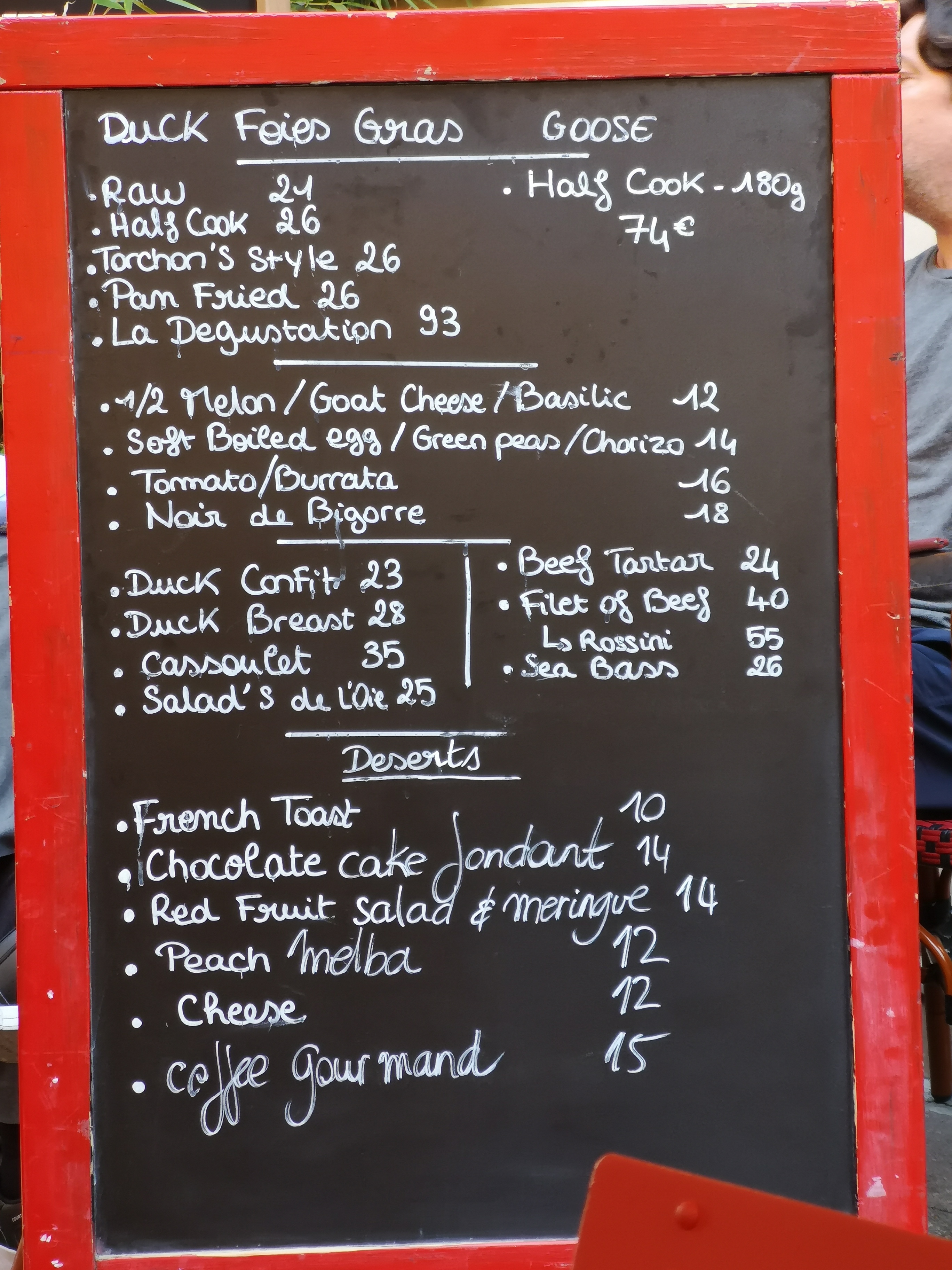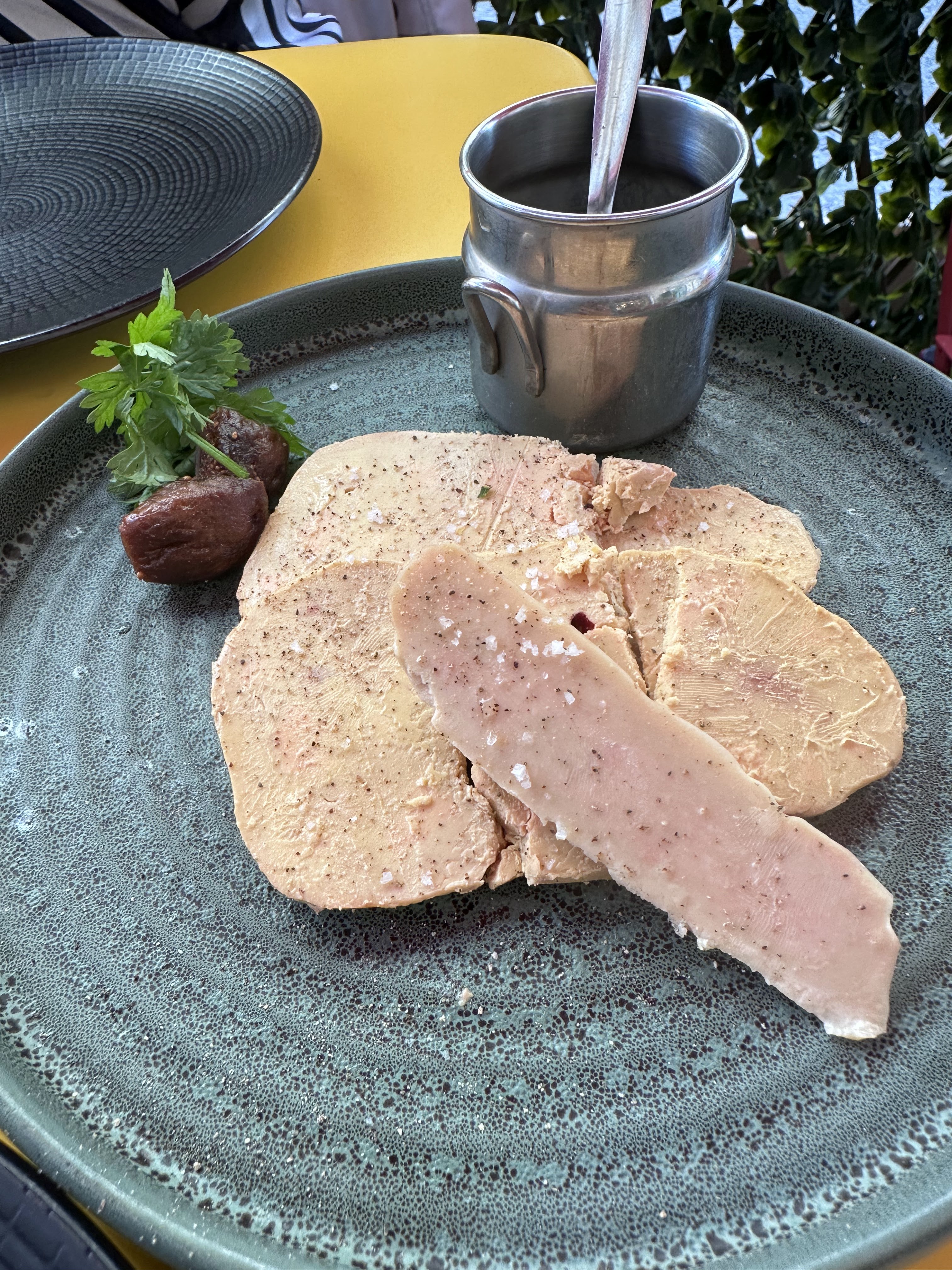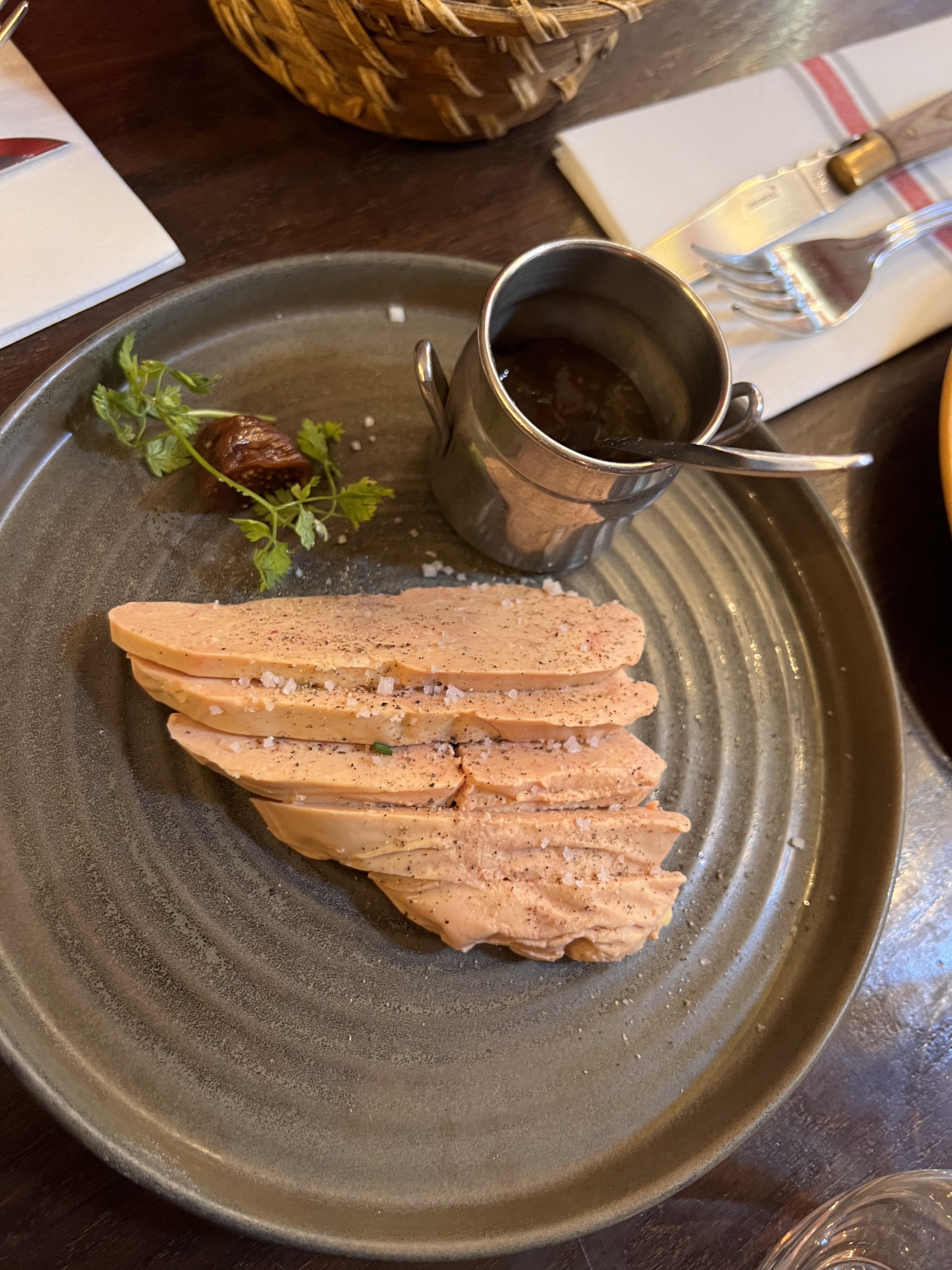 Nous sommes venu manger sur la terrasse le 22 septembre vers 19:50. Superbe restaurant délicieux et serveur super gentil et agréable! En tant que Québécois, nous avons été bien recu et super bien conseillé pour les plats et vins. L’assiette gourmande de foie gras était exquise! Superbe expérience!