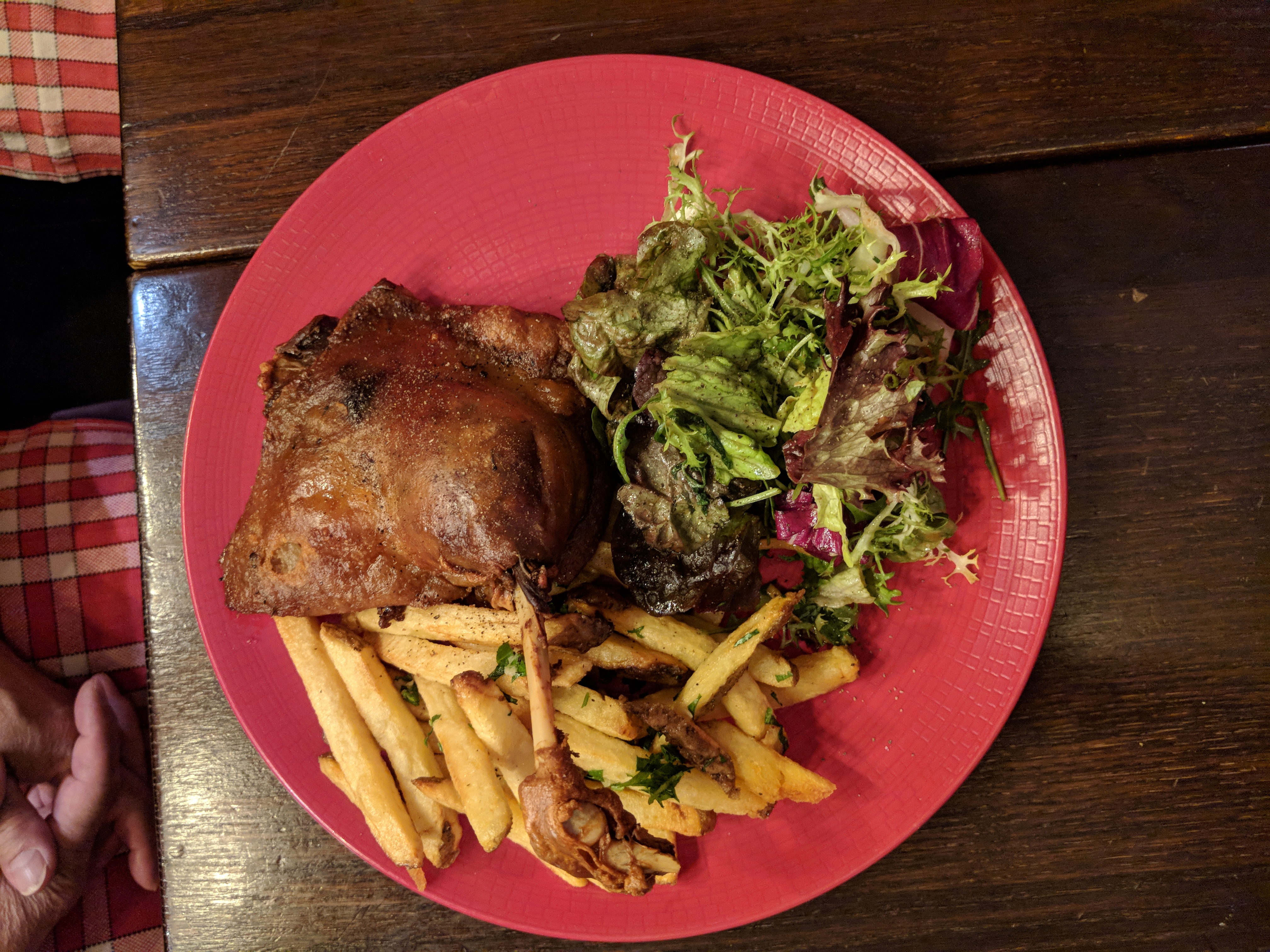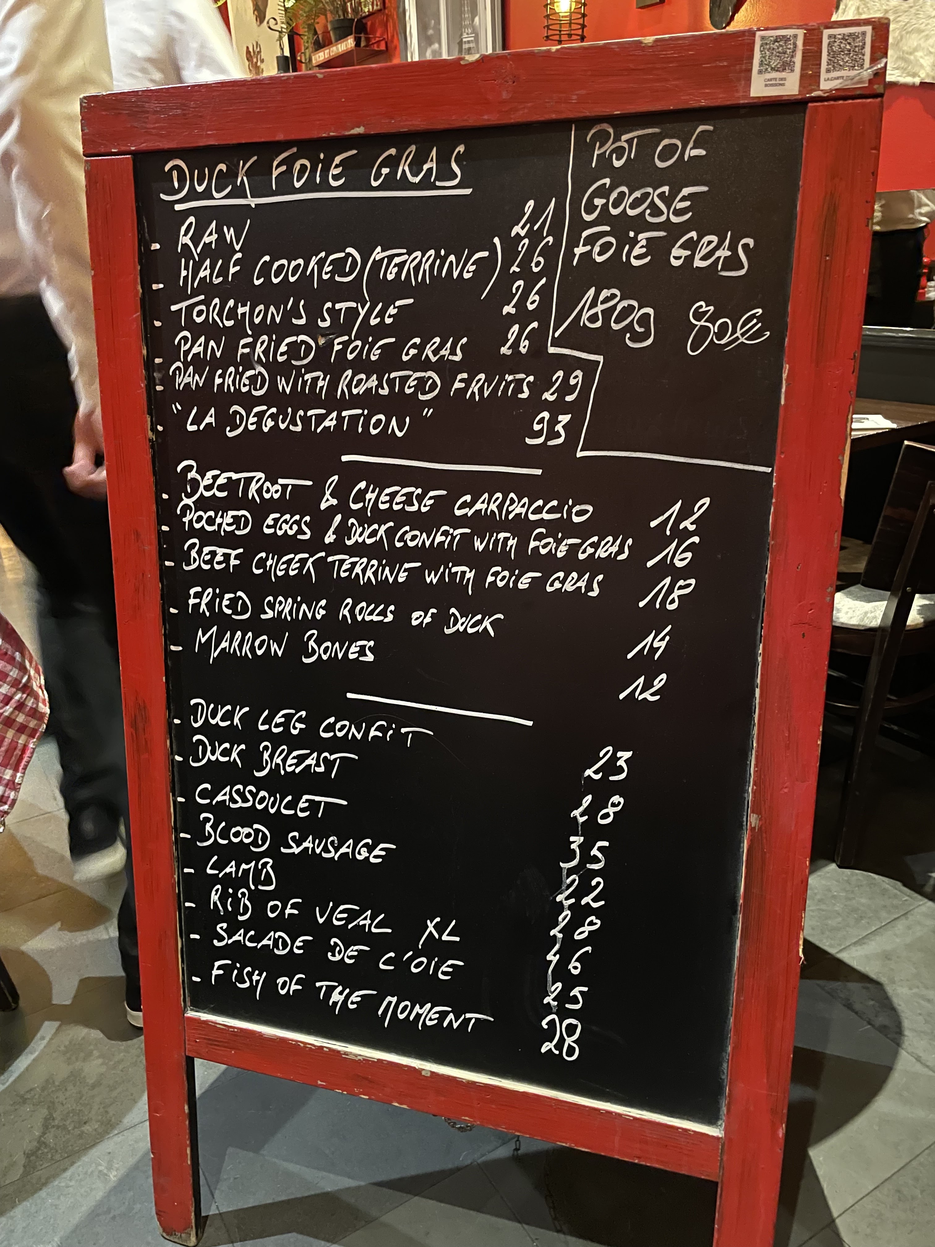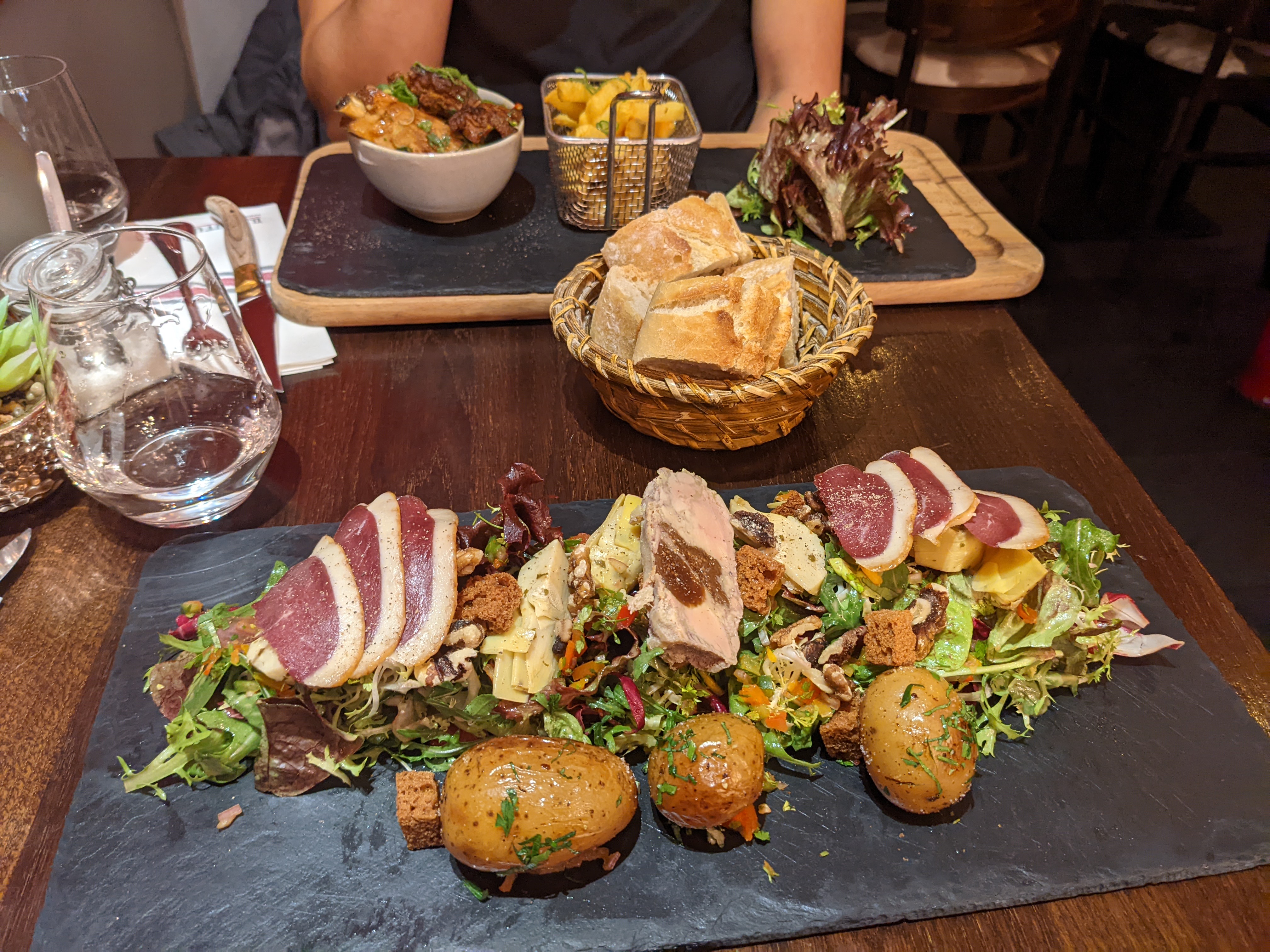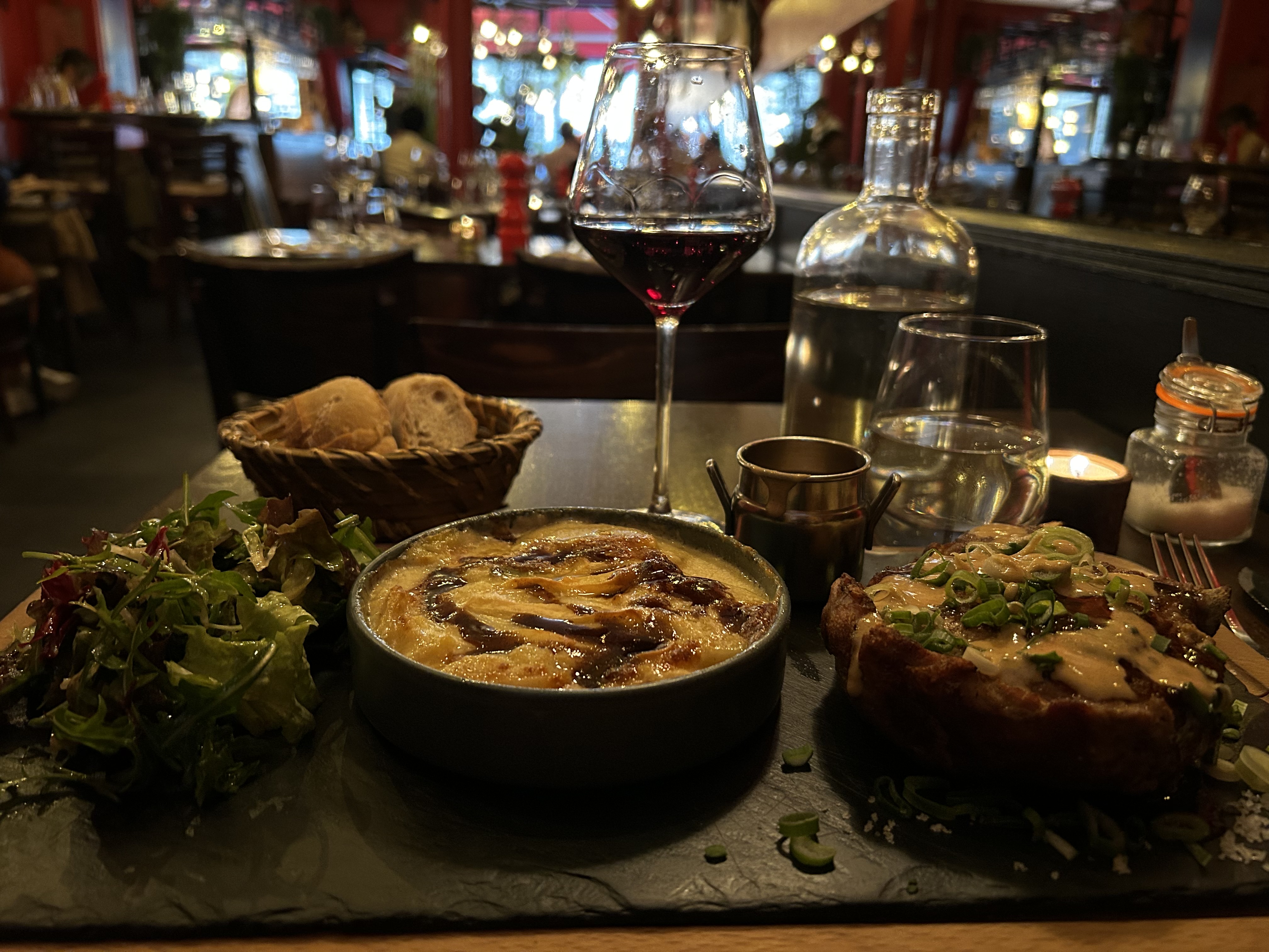 Bonne adresse pour tester les incontournables de la gastronomie française. Nous avons prit le plateau dégustation de foie gras, l’os à moelle, les escargots, le magret et le confit de canard. Tout est très bon mais les portions pourraient être légèrement plus garnies pour le prix payé, notamment le magret de canard.