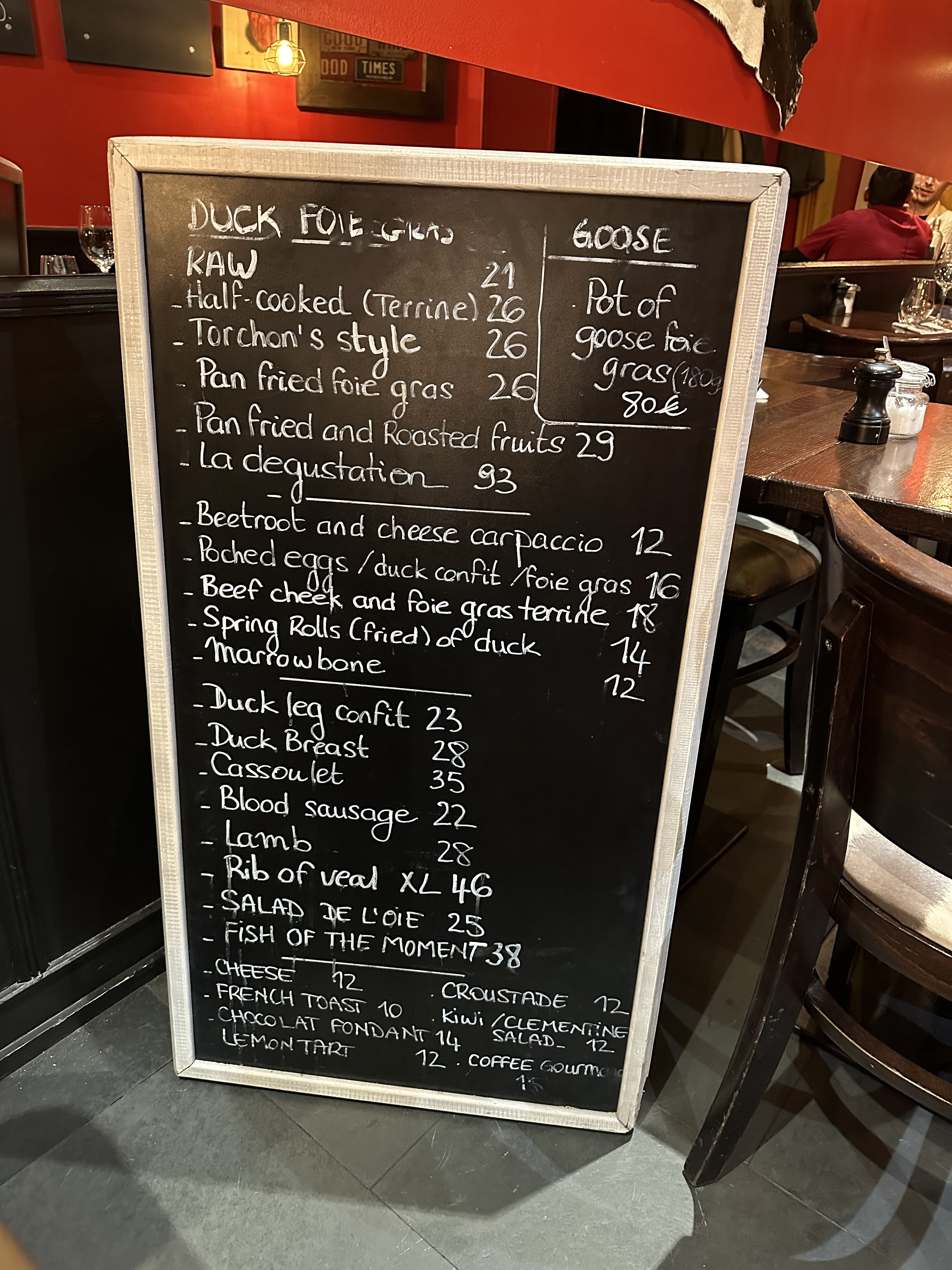 J’adore toujours visiter chaque fois que je suis à Paris, avec son excellent accueil, très joli intérieur et superbe carte! Je me régale toujours! Mais il faut remettre le boudin au menu SVP !! car c’est ce plat délicieux qui nous ramène ici chaque fois! Et bien sûr le fois gras!!!