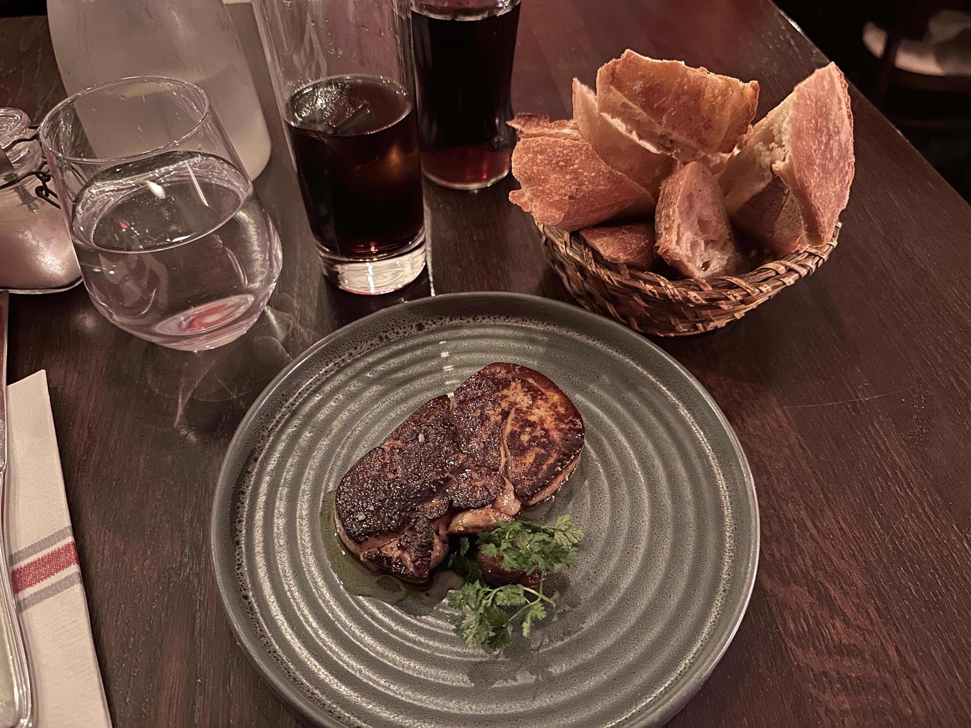 Soirée très sympathique. Nous avons testé le foie gras cru et cuit et c'était un délice. Serveurs également charmants. Nous reviendrons!