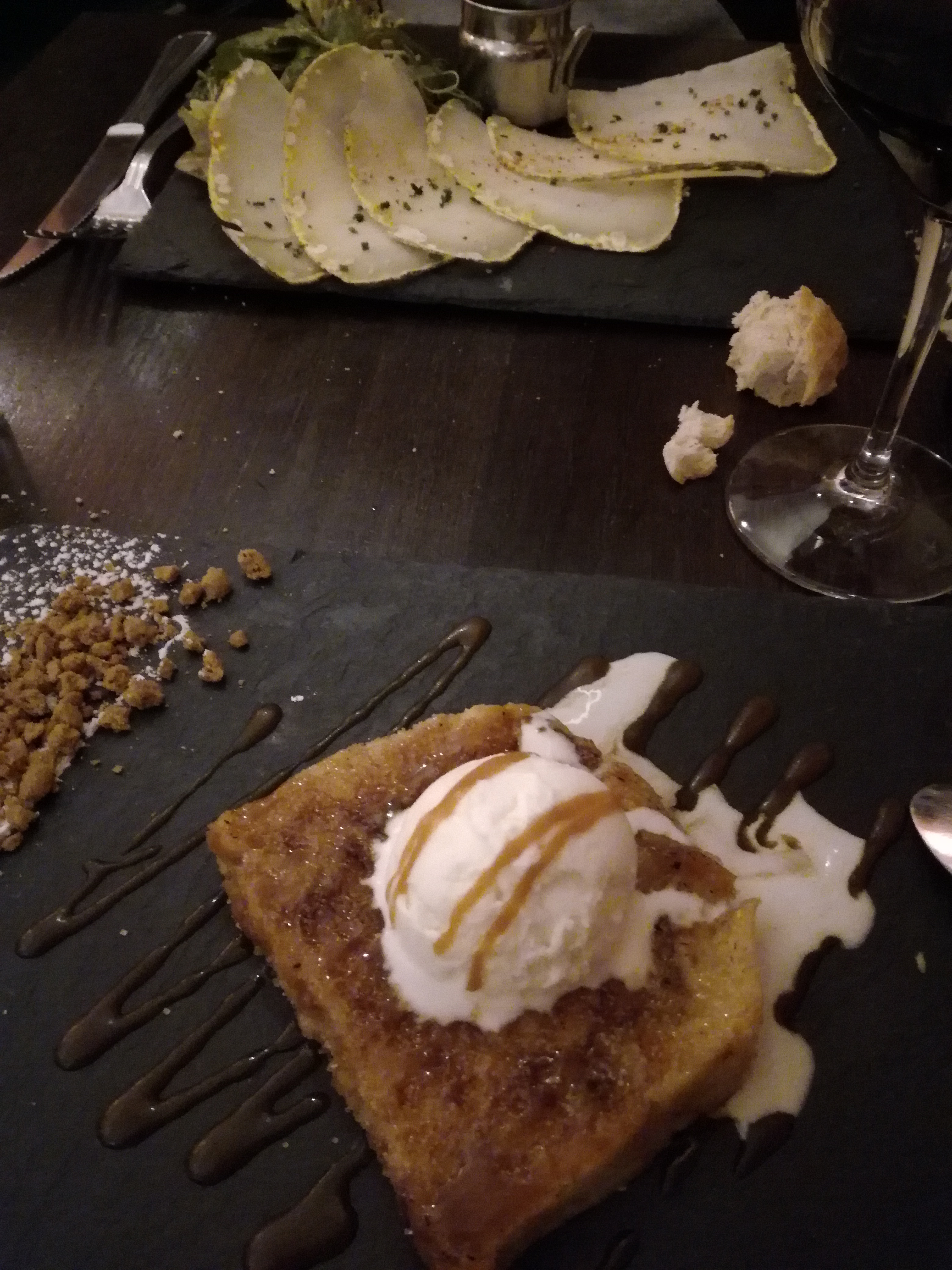 Excellent début, excellente cuisine mais à partir de 8h45, quand le restaurant est plein, les deux personnes, pleines de bonne volonté et très aimables qui sont en charge du service, sont débordées et nous avons attendu trois quarts d'heure de pouvoir commander un dessert.