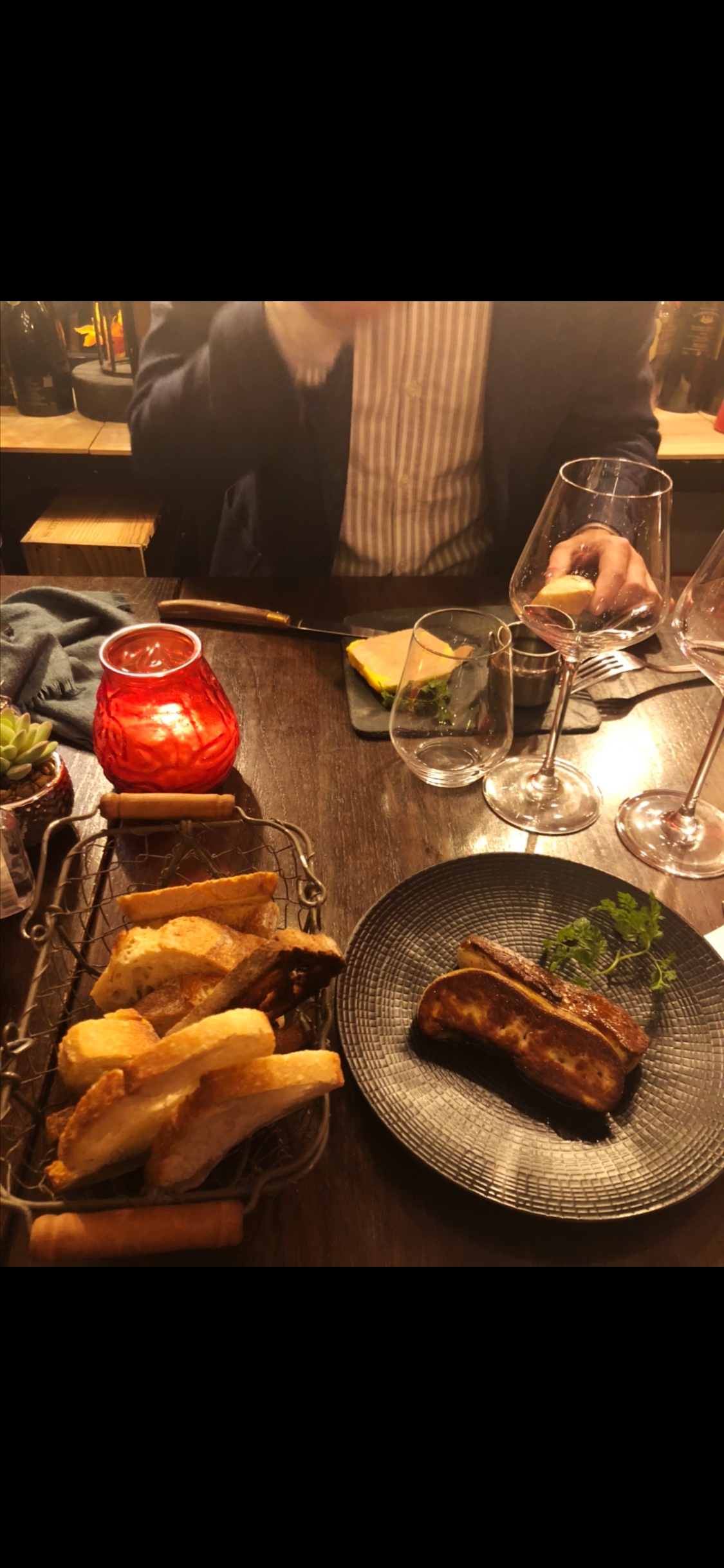 Un moment incroyable. J’ai pris la planche découverte de foie gras et ce fût une découverte gustative juste magique (mention spéciale pour le foie gras mi-cuit) ! Le personnel est au petits soins et la salle est intimiste (on se sent dans son petit cocon). Hâte d’y retourner ! 😋