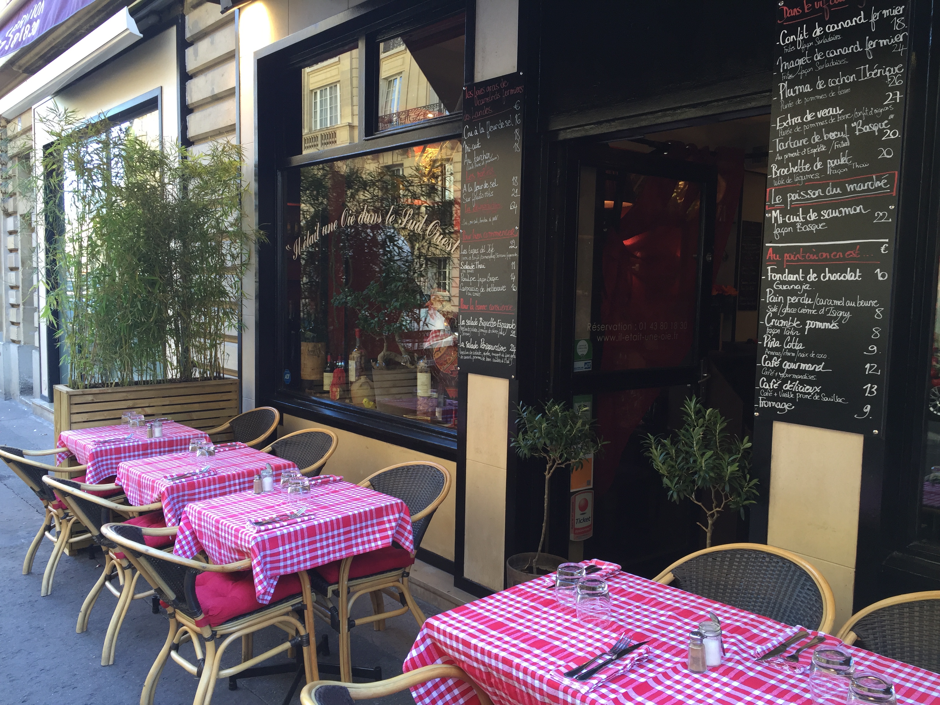 Ma copine voulait absolument un bon confit de canard! Nous marchions dans Paris, ce samedi soir la, et soit le confit n’était pas disponible, soit l’endroit ne présentait pas bien, soit il y avait trop de monde! Notre ami Google nous a dégoté ce qui se fait de mieux en terme de confit de canard et de produits du sud ouest! Il était une oie dans le Sud Ouest a tenu toutes ses paroles! Le maître d’hôtel Alexander a fait un travail exceptionnel. Je suis du métier, et je vois quand un garçon est passionné et aime son travail! Il nous a fait nous sentir à l’aise, un bon humour, une touche de rigolade, des bonnes suggestions! Toppissime! Le foie gras aurait pu être meilleur, mais le cassoulet était à tomber par terre! Le confit succulent (mademoiselle était ravie, et tant mieux pour moi…) et le vin, le Saint Joseph recommandé par Alexander allait parfaitement! Bref, je vous dis à bientôt!