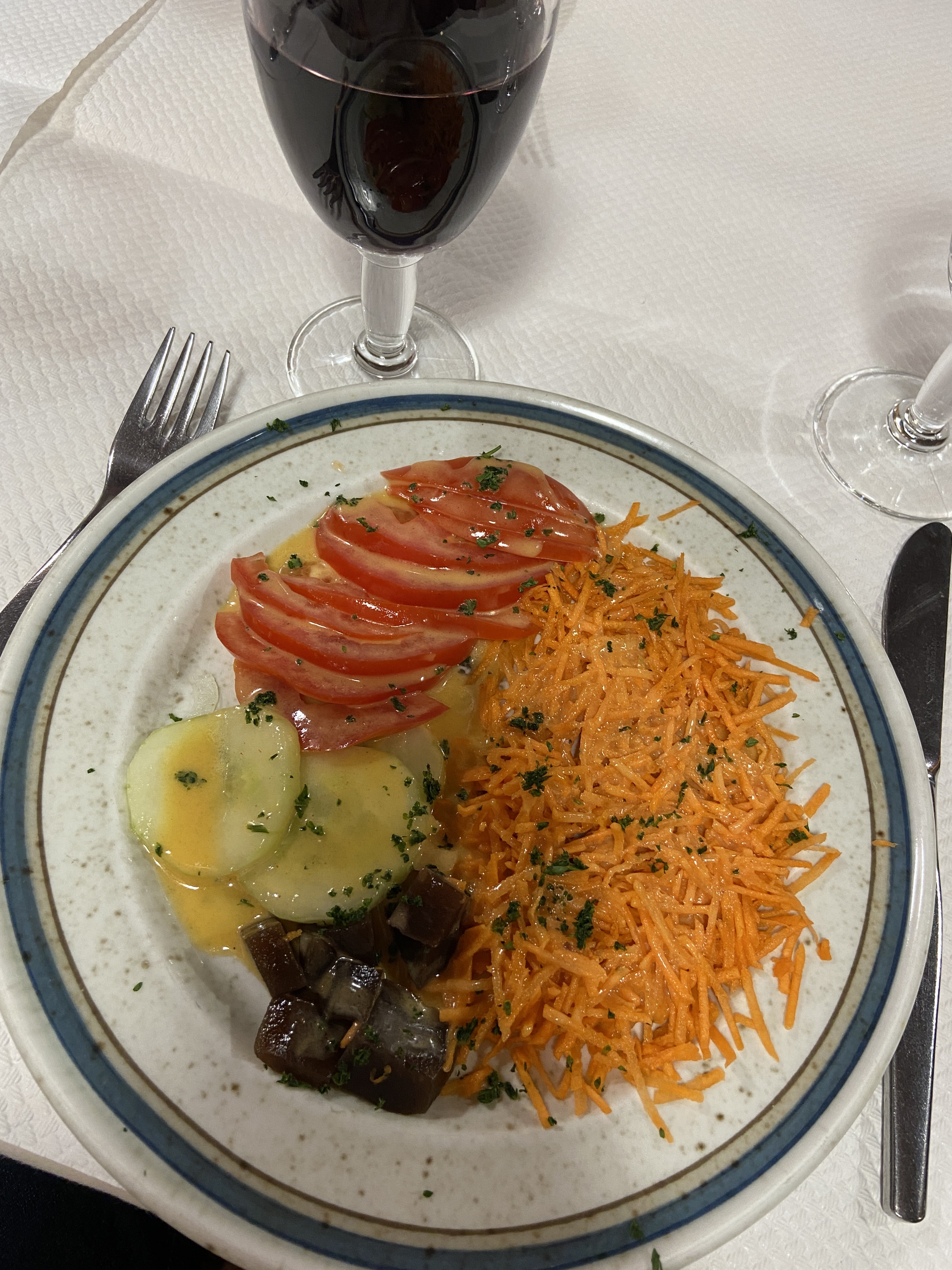Restaurant familial où vous vous sentez chez vous et à l'extérieur ! Fonctionnant comme une machine très bien huilée, le service est sympathique sans trop de chichi, nous nous sommes sentis très à l'aise, pas pressés et sans retards, rapides et efficaces, une expérience tellement rafraîchissante et nous espérons revenir et retrouver la même chose dans quelque temps que ce soit. Deux menus du jour différents, nous avons choisi celui à trois plats qui offre un rapport qualité-prix fantastique à 24 € avec une grande portion de vin incluse (ou aurait pu être de la bière ou autre chose). Bonne nourriture faite maison, fraîche et très satisfaisante. Une crème caramel comme maman le préparait et une souris au chocolat que mon mari appréciait énormément (et qui est étonnamment difficile à trouver). Cet endroit est une trouvaille rare, nous le recommandons vivement pour un bon repas authentique qui ne vous ruinera pas ! Merci beaucoup pour une très bonne soirée! Bonne chance ❤️👌